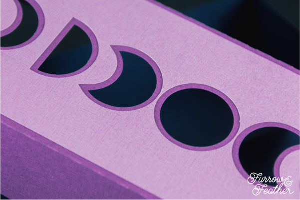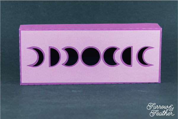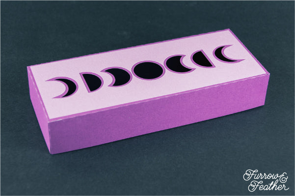 Such a fun box for your witchy or gothic friends! Features moon phases cut out on the top of the box. This would look great in monochrome as well! It’s the perfect size to hold handmade jewelry, small gifts or Halloween treats!