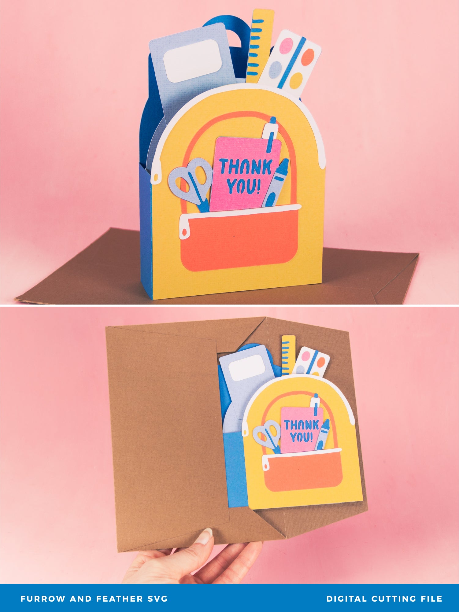 3D School Backpack Card - Teacher Appreciation Card SVG
