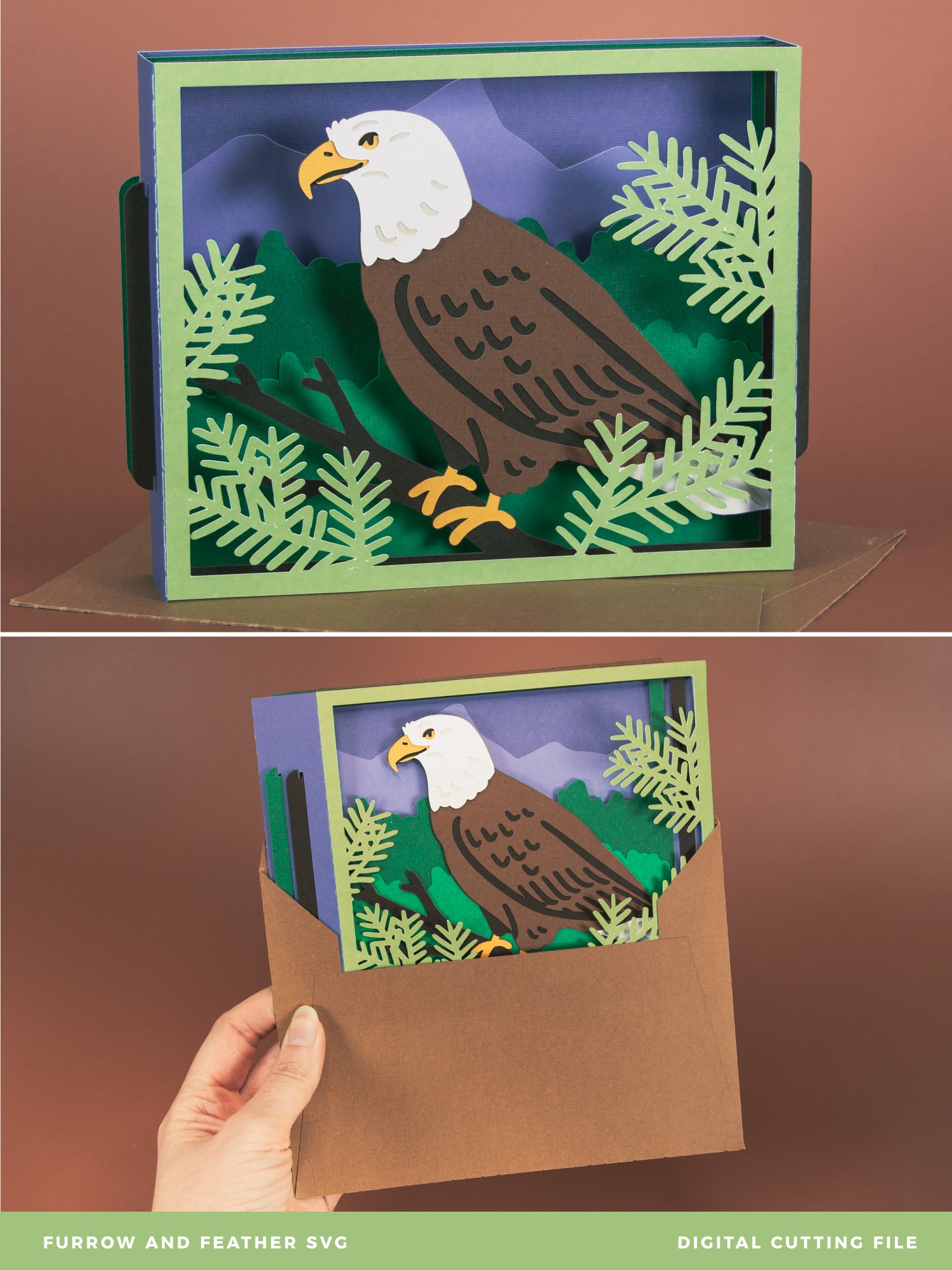 Bald Eagle Scene Card - 3D 4th of July Card SVG