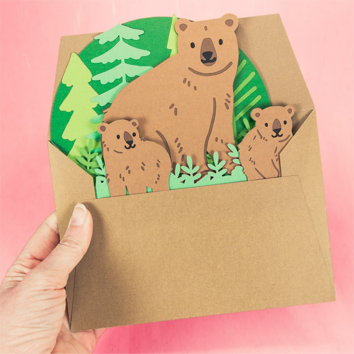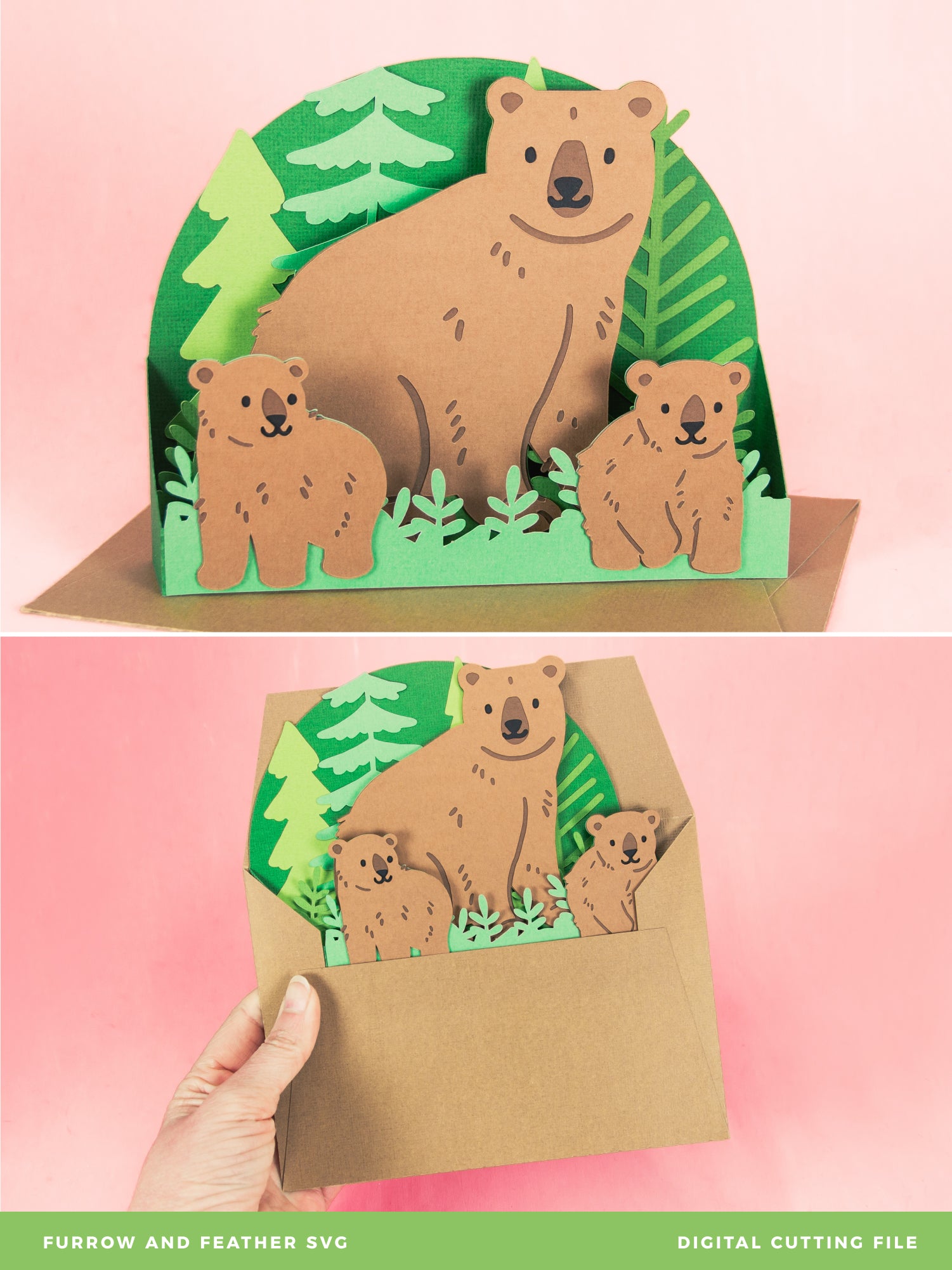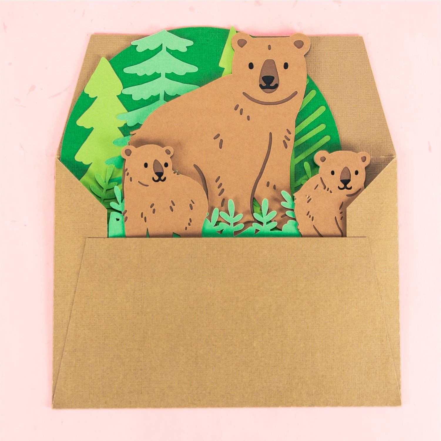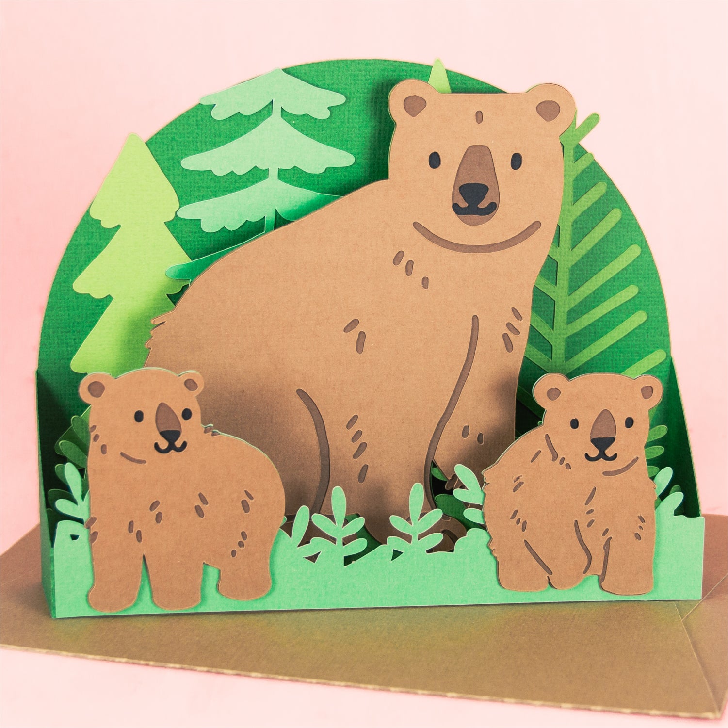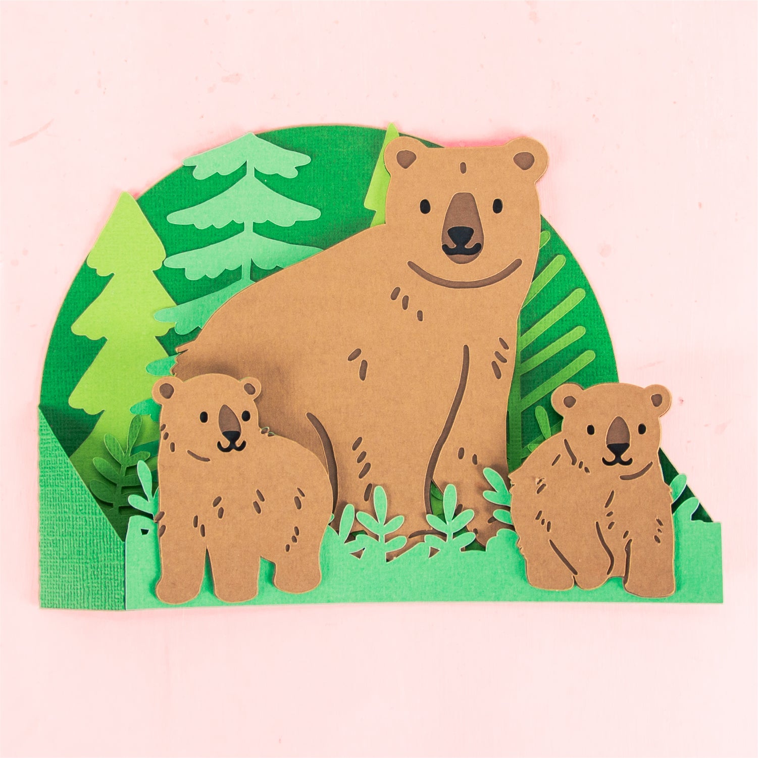 Bear and Cubs Card - 3D Outdoorsy Card SVG