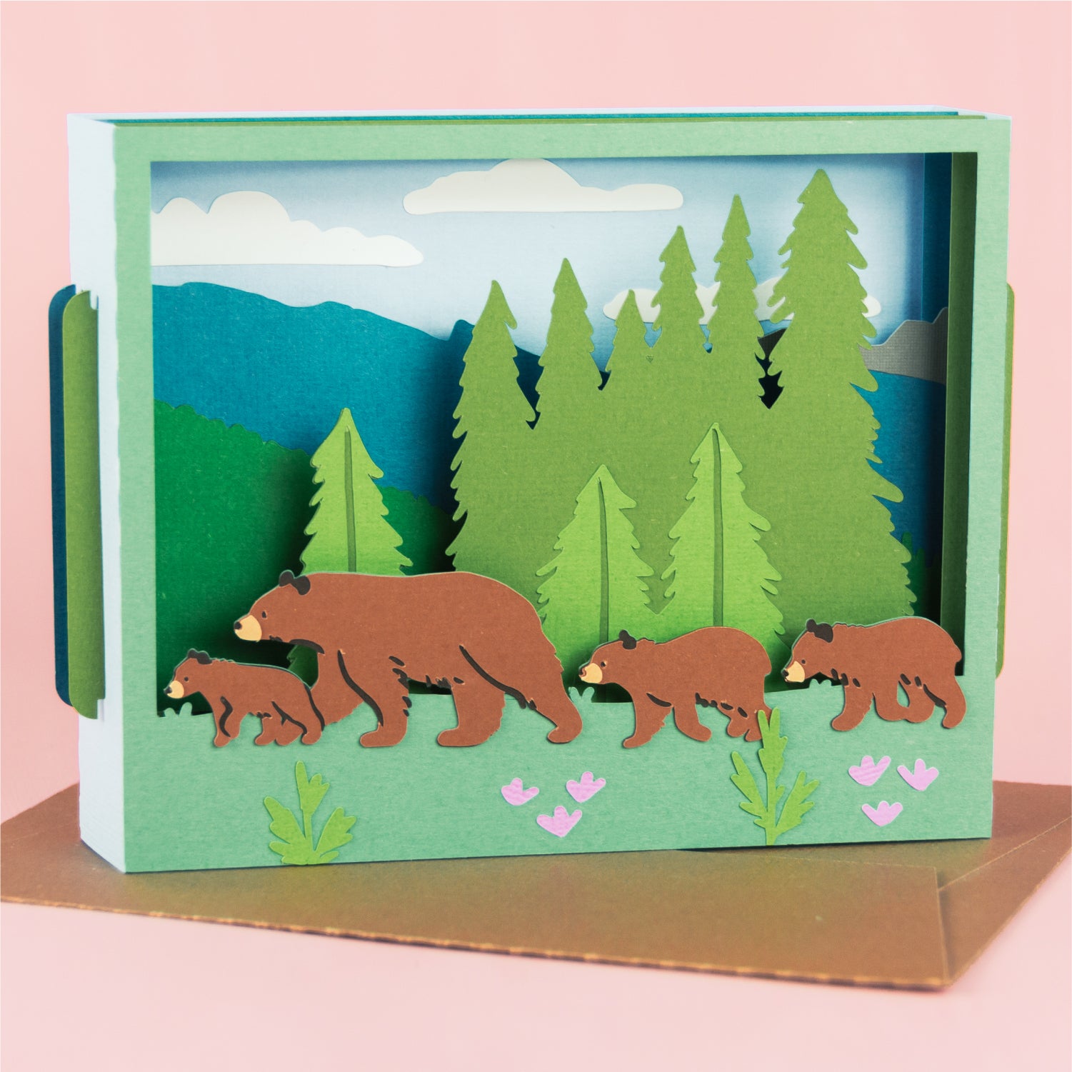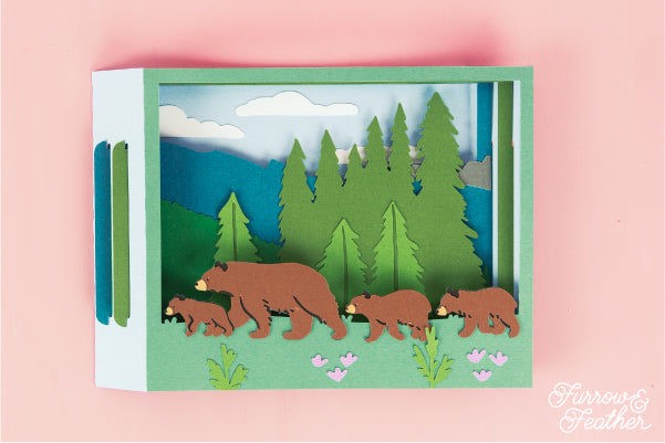 This is such a cute card for any occasion! It would also work great for Father's Day or Mother's Day. Add another bear cub! Or create it for your favorite outdoorsy person. Folds flat to fit in the included 5x7” envelope cut file.