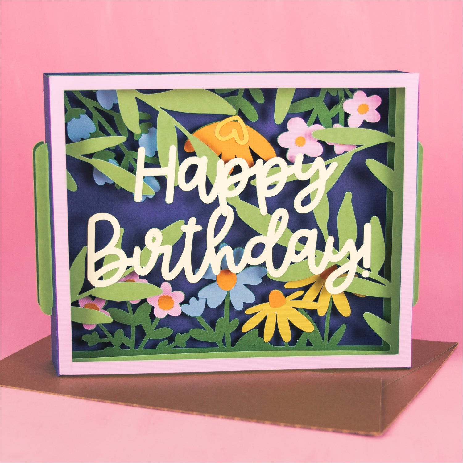 Birthday Card Layered with Flowers - 3D Birthday Card SVG