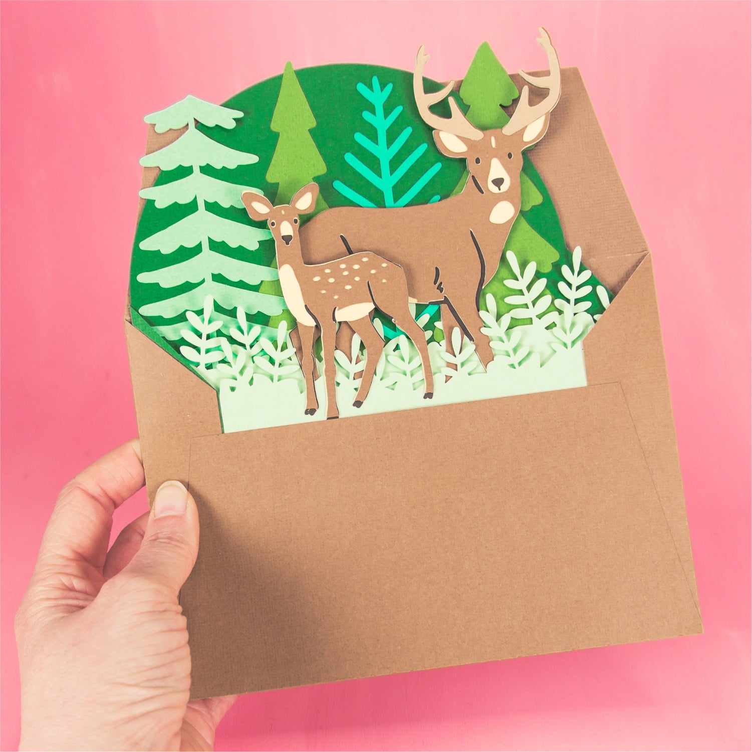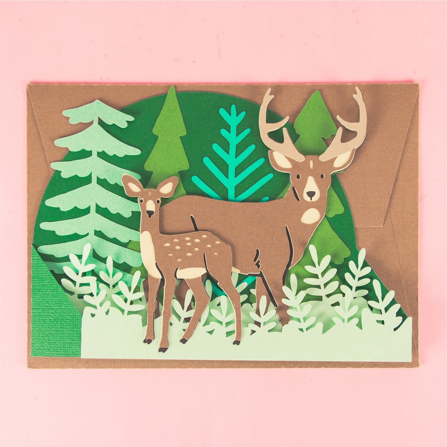 Create a super sweet card for Father's Day with this Buck and Fawn Card - a 3D Father's Day card SVG! This is such a fun card for Father's Day or a birthday card. This design features two deer, a white tail buck and fawn in a forest. This cutting file is perfect for Cricut and Silhouette cutting machines. The card folds flat for easy mailing and fits perfectly in the included 5x7” envelope cut file. Explore more of my card designs for even more cute and creative ideas!