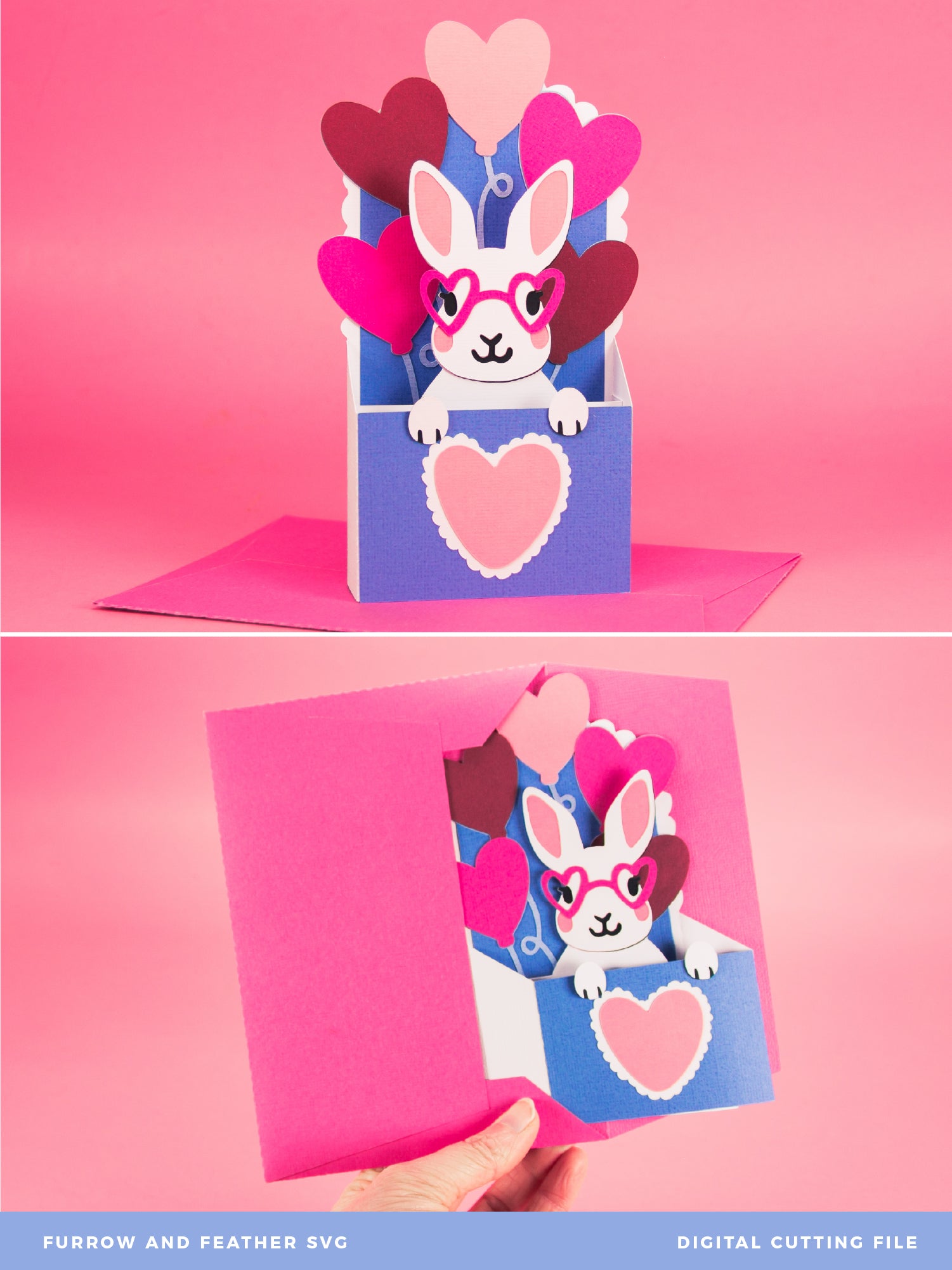 Bunny with Heart Balloons Card - 3D Valentine's Day Card SVG