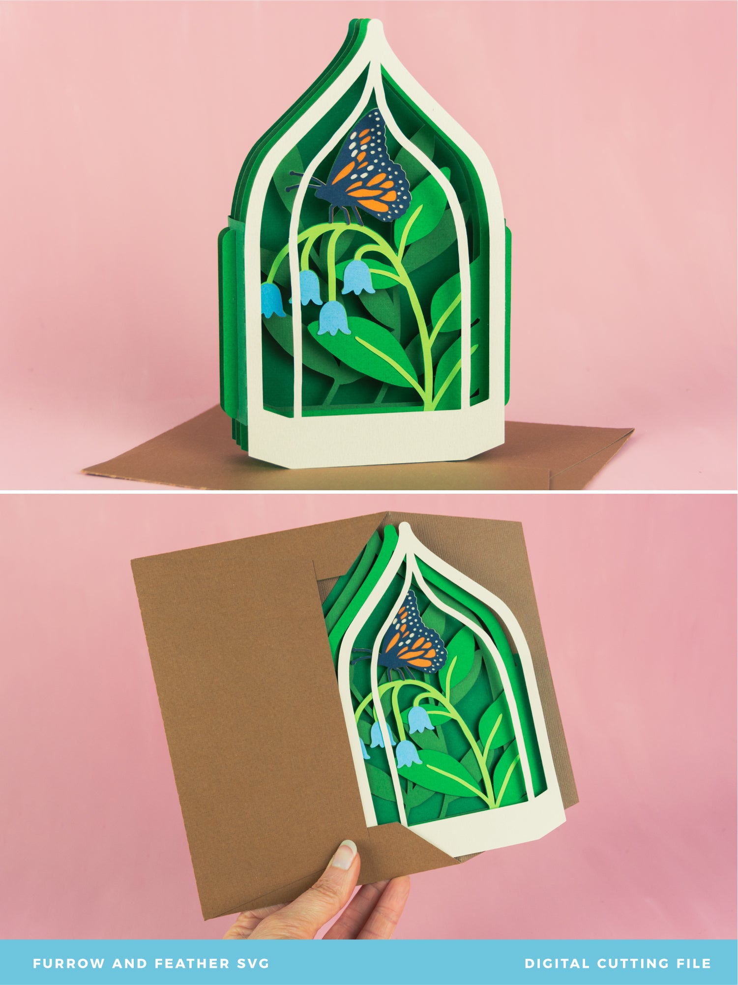- 1 SVG, 1 DXF and 1 EPS cutting file of the pop up card (dashed score lines)