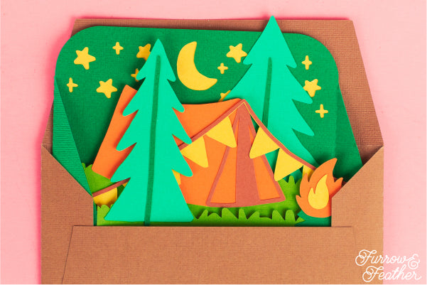 A fun card for your favorite outdoors-person. Great for the summer, or for Father’s Day! Add your own sentiment. Folds flat to fit in the included 5x7” envelope cut file.
