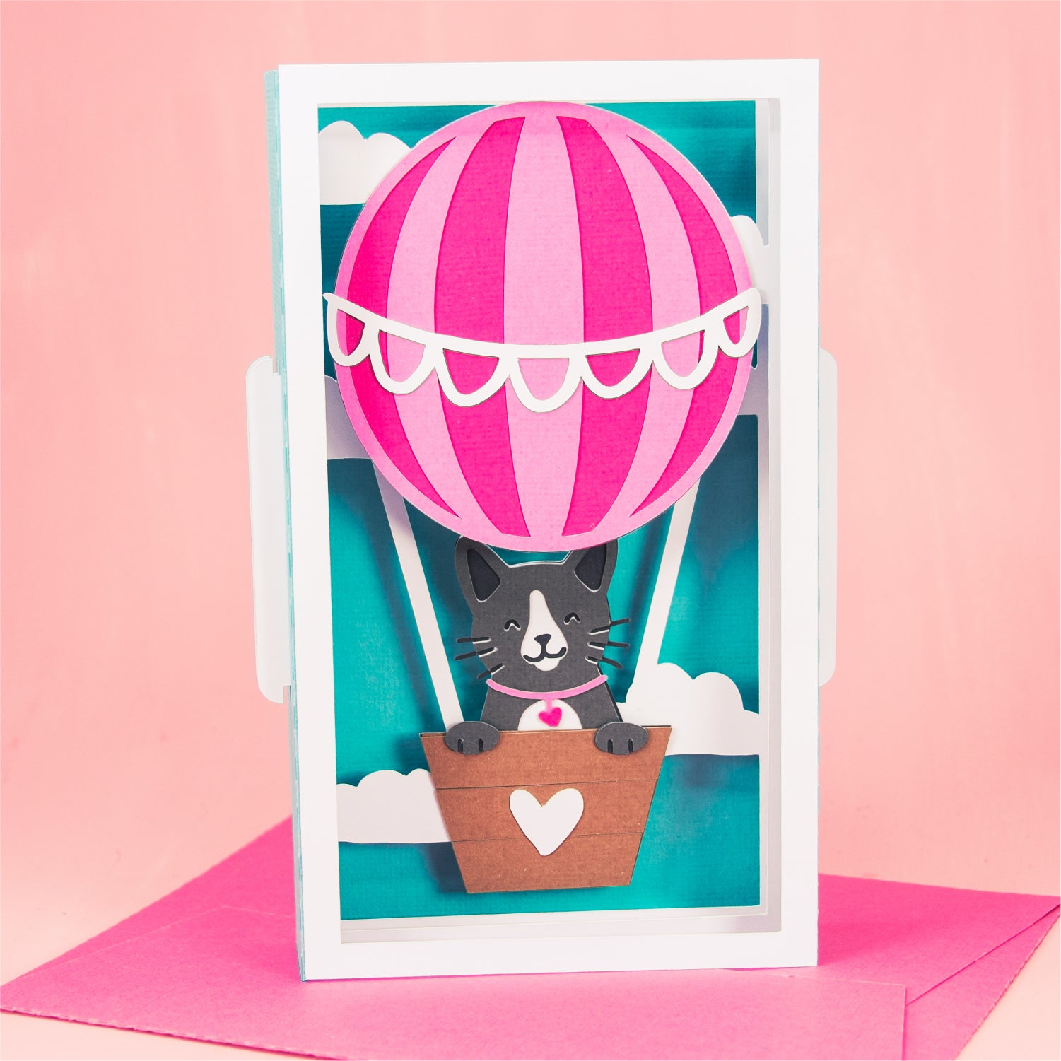 Cat Hot Air Balloon SVG - Birthday Card SVG