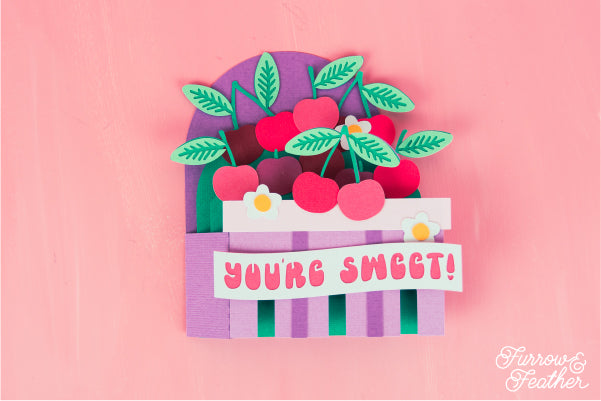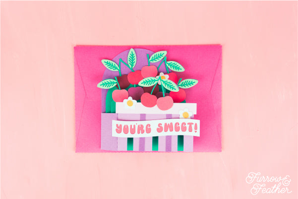 This is such a fun bright card for any occasion! Use the optional sentiment, or add your own. Lovely card for spring or for summer. Folds flat to fit in the included 5x7” envelope cut file.