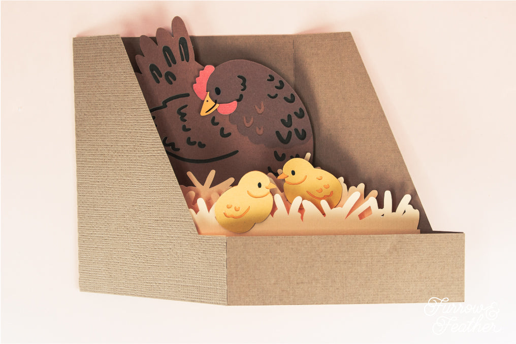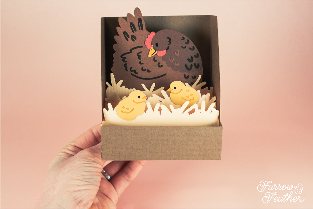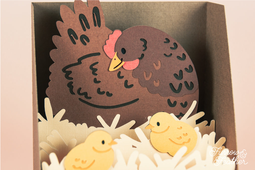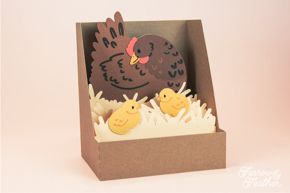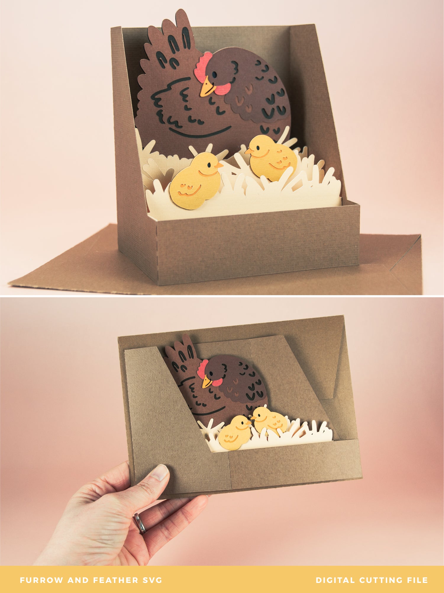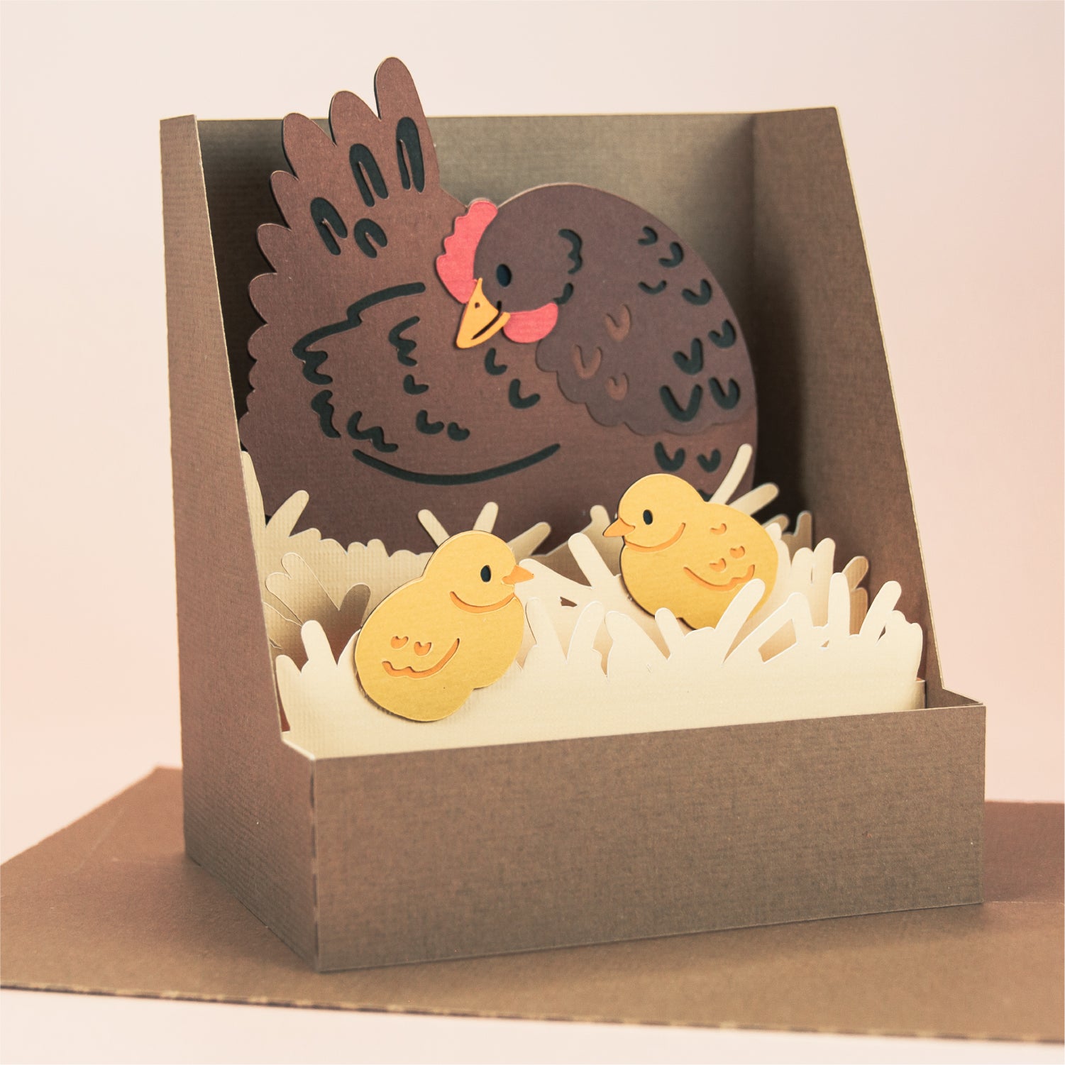 Chicken Nest Box Card - Hen and Chicks Card SVG