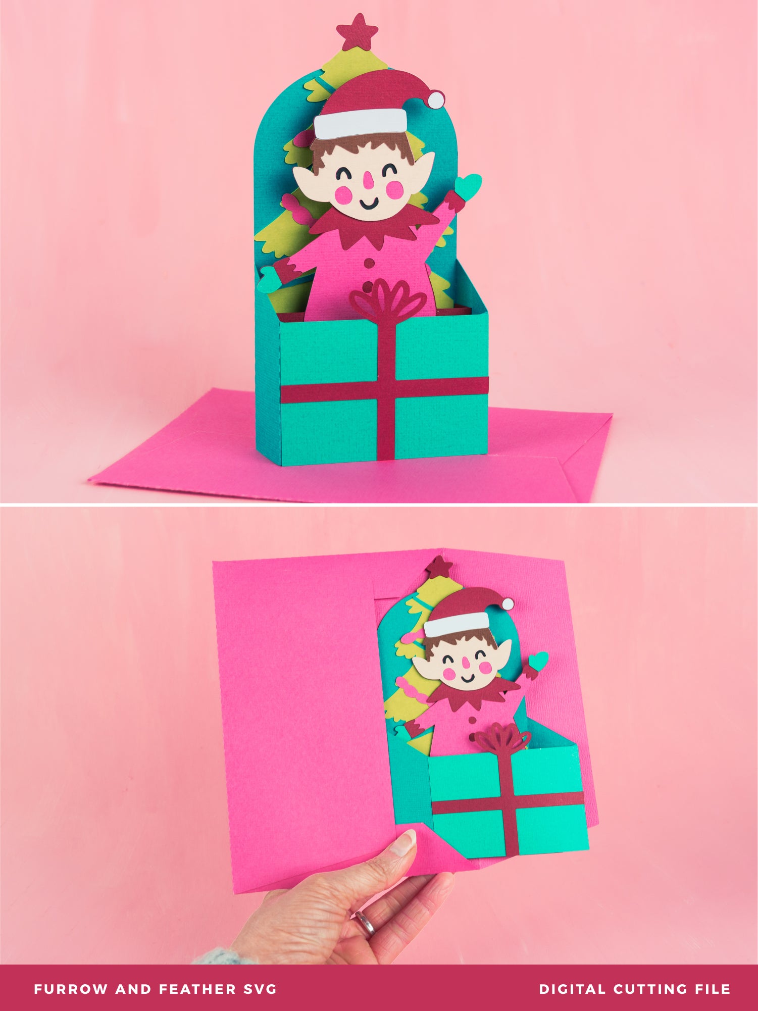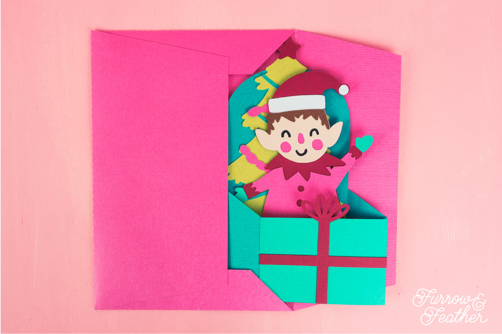 Bring holiday cheer to life with this festive Christmas card featuring a playful, colorful elf! Perfect for Cricut and Silhouette machines, this cutting file lets you create a vibrant card that adds whimsy and joy to your seasonal greetings. Personalize the elf’s colors to match your style or create a unique design each time. The card folds flat, making it easy to send in the included 5x7” envelope cut file. Don’t miss out on other holiday designs in this collection.