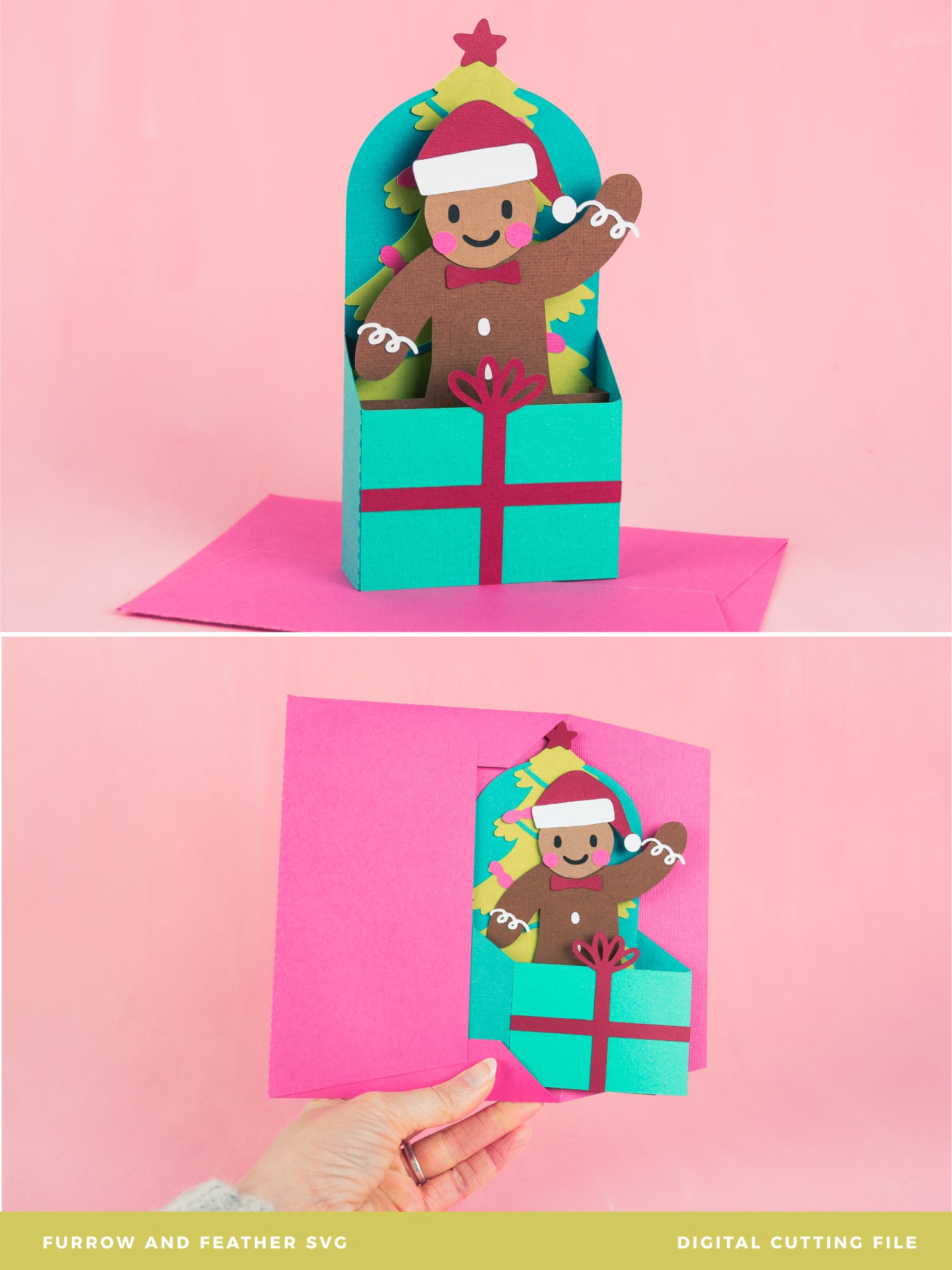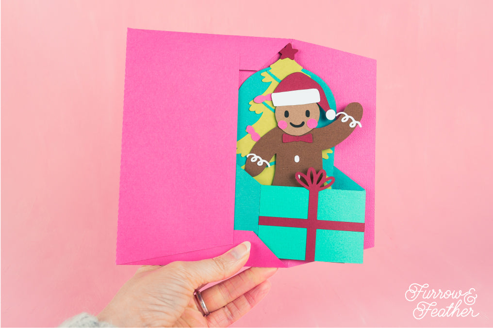 Sweeten up your holiday crafting with this delightful Christmas card featuring a cheerful gingerbread man! This cutting file is designed for Cricut and Silhouette cutting machine users who want to create a fun, festive card. The card folds flat, making it easy to send in the included 5x7” envelope cut file. Explore the rest of this collection for more joyful, holiday-themed designs to make your season extra special!