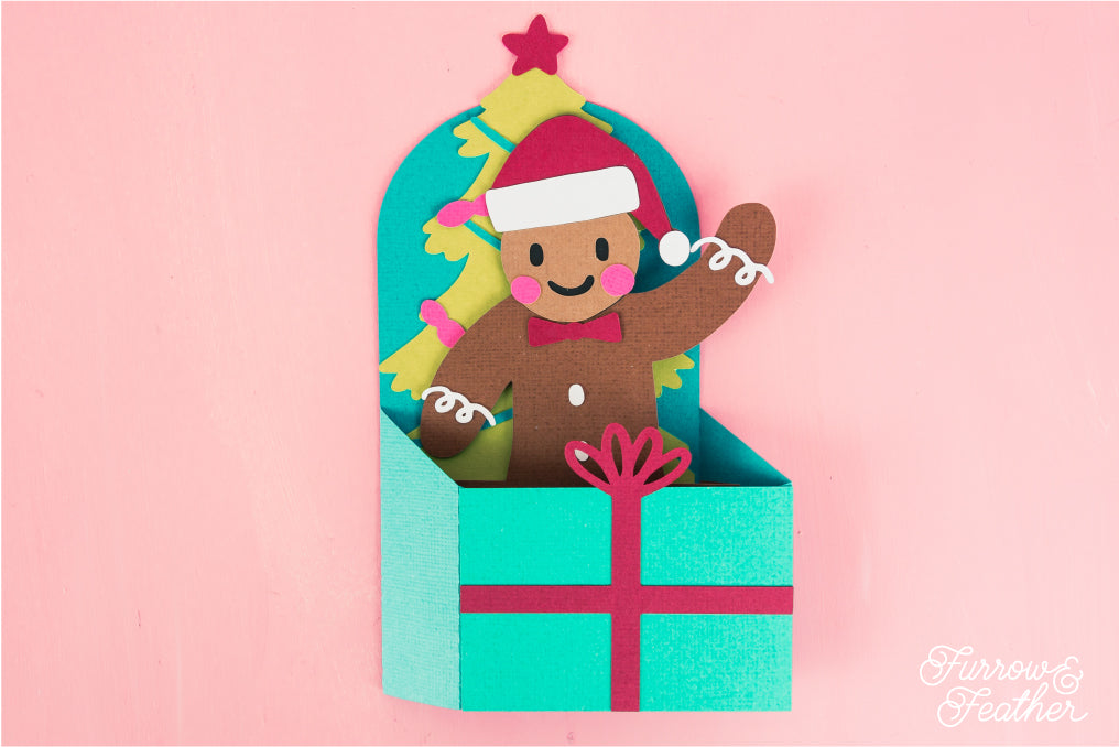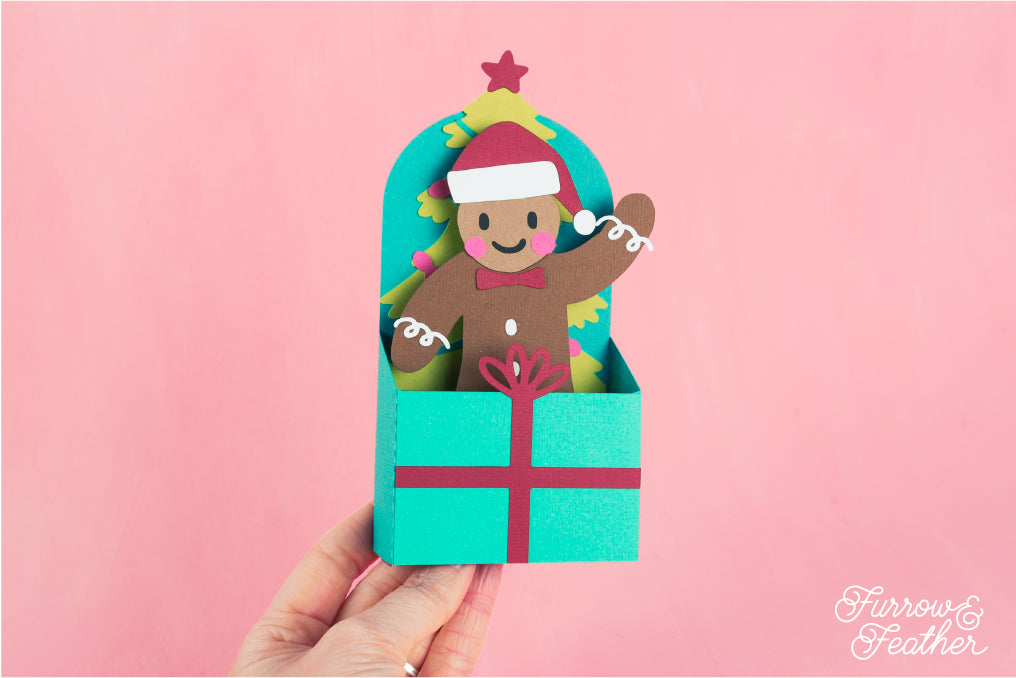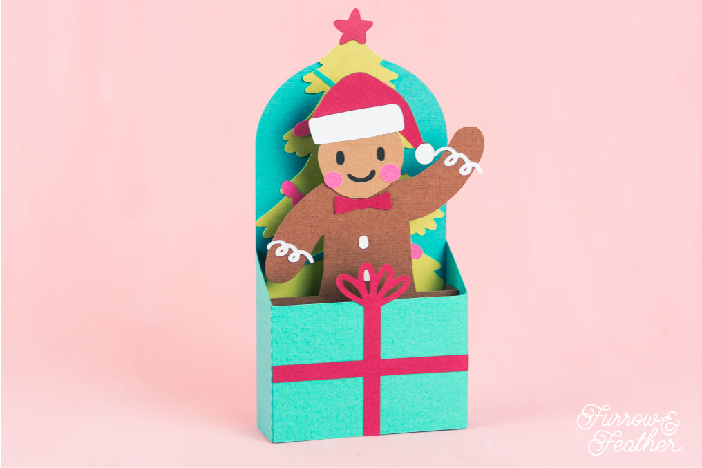 Christmas Card SVG - Gift Box Gingerbread Man