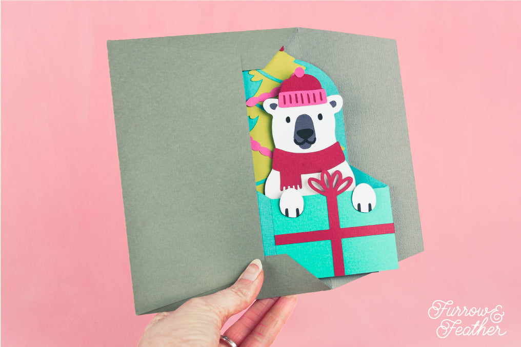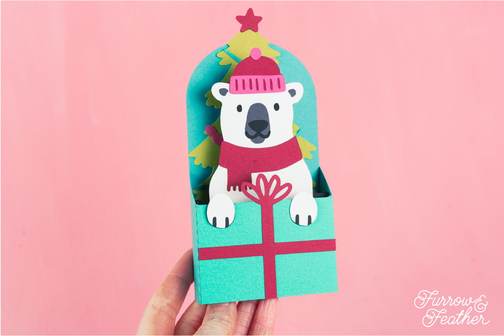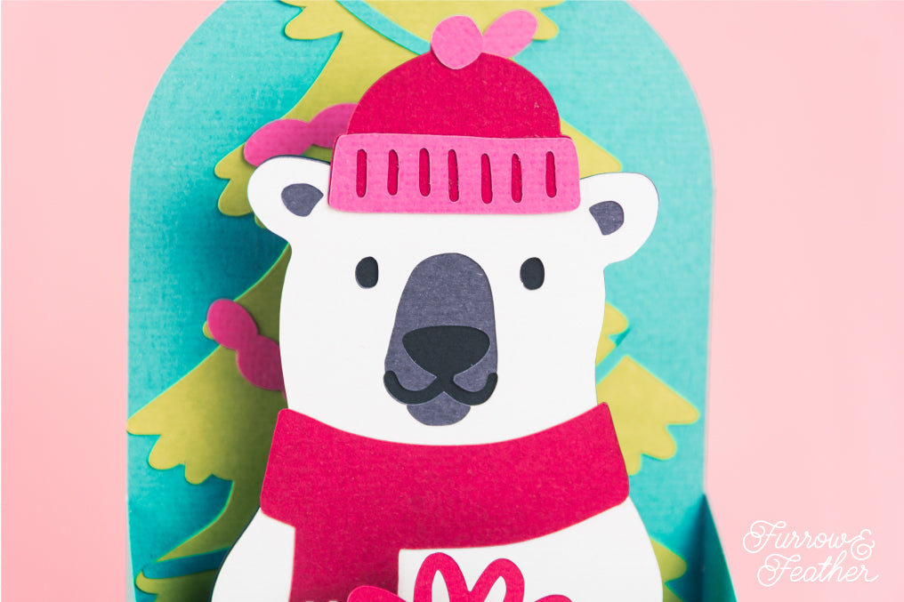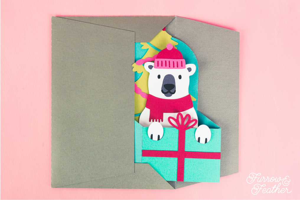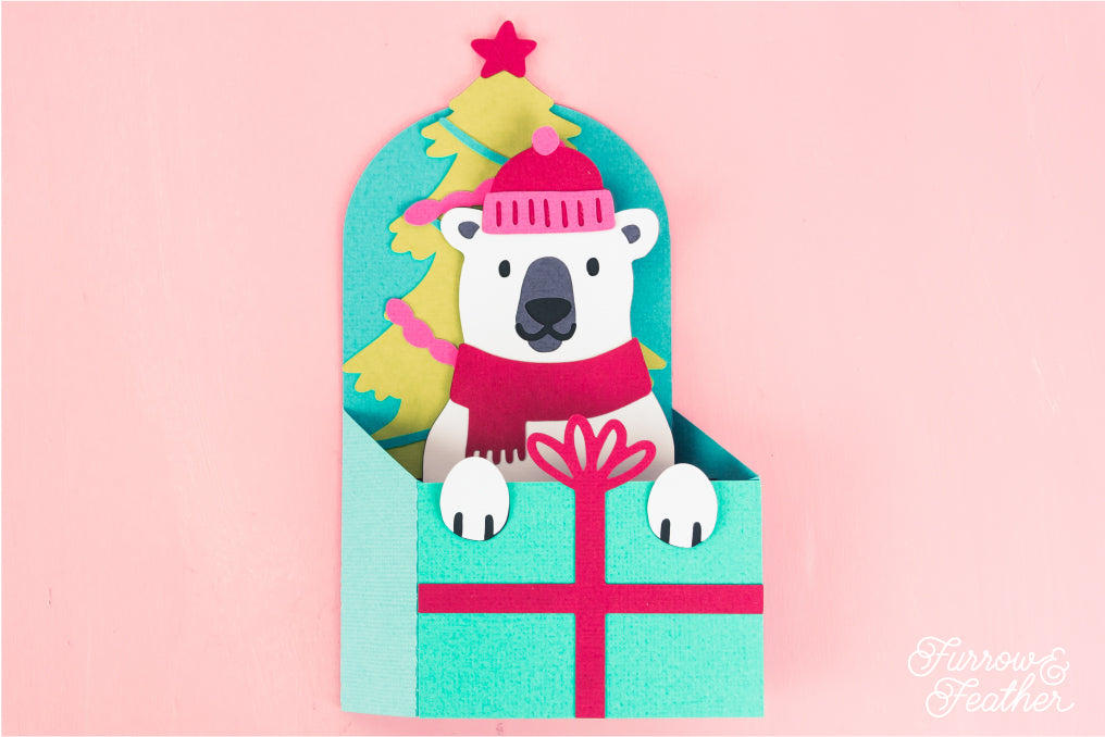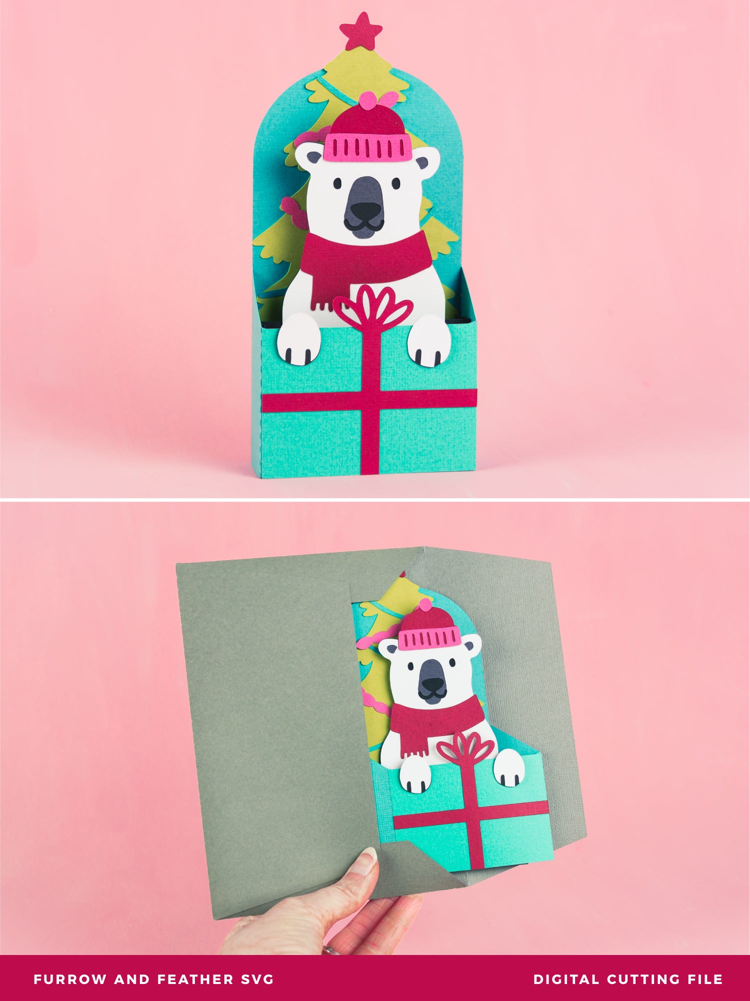 Warm up your Christmas crafting with this cozy holiday card svg featuring an adorable polar bear bundled up! Ideal for Cricut and Silhouette cutting machines, this cutting file lets you create a heartwarming card that brings the cozy spirit of the season to life. Customize the polar bear’s scarf and accessories to match your favorite colors & create a unique, festive look. The card folds flat for easy mailing and fits perfectly in the included 5x7” envelope cut file. Explore other charming designs in this collection to add even more winter cheer to your holiday creations!