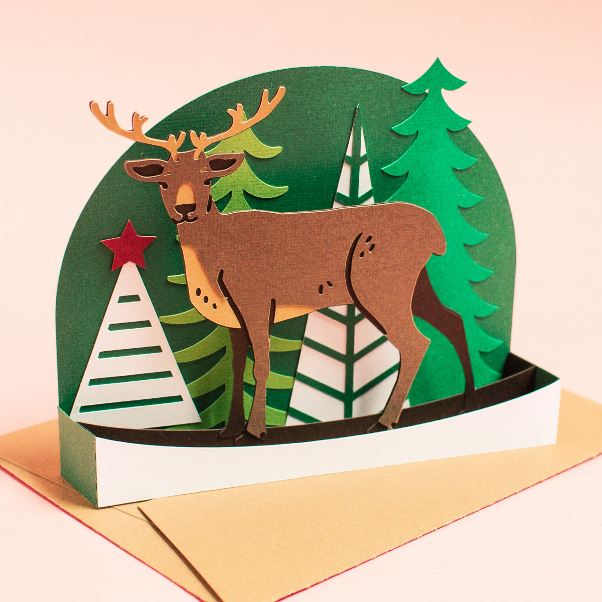 Such a fun reindeer card for Christmas! Super easy to put together. Folds flat to fit in the included 5x7” envelope cut file. Includes a white piece for the back if you’d like to write a note.