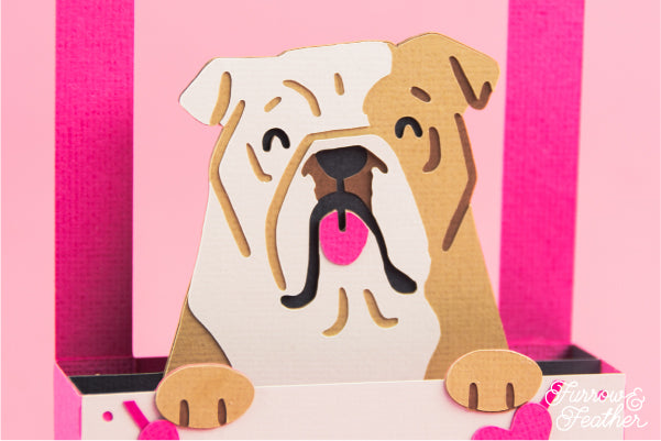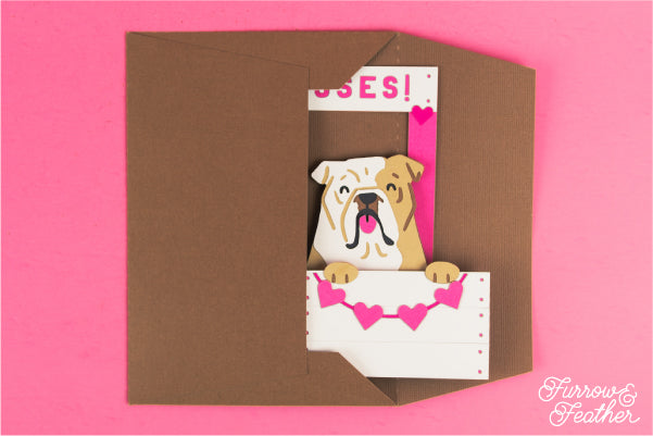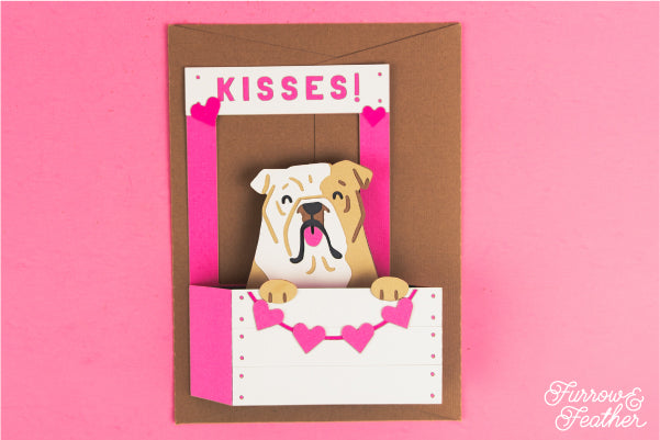 A fun card for your favorite bulldog parent! If you use the optional white bulldog, you can add a specific pup’s markings using colored pencils or paint. This card is great for Valentines Day, Anniversaries, Birthdays or to welcome a new pet to the family. Folds flat to fit in the included 5x7” envelope cut file.