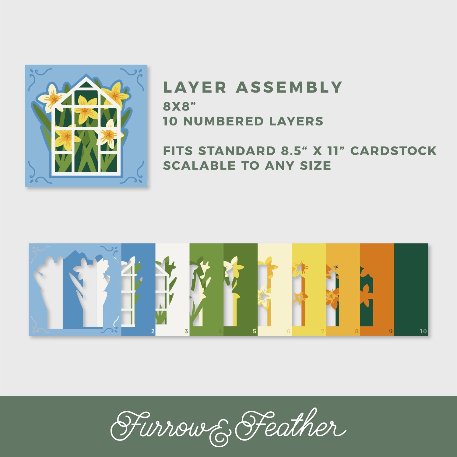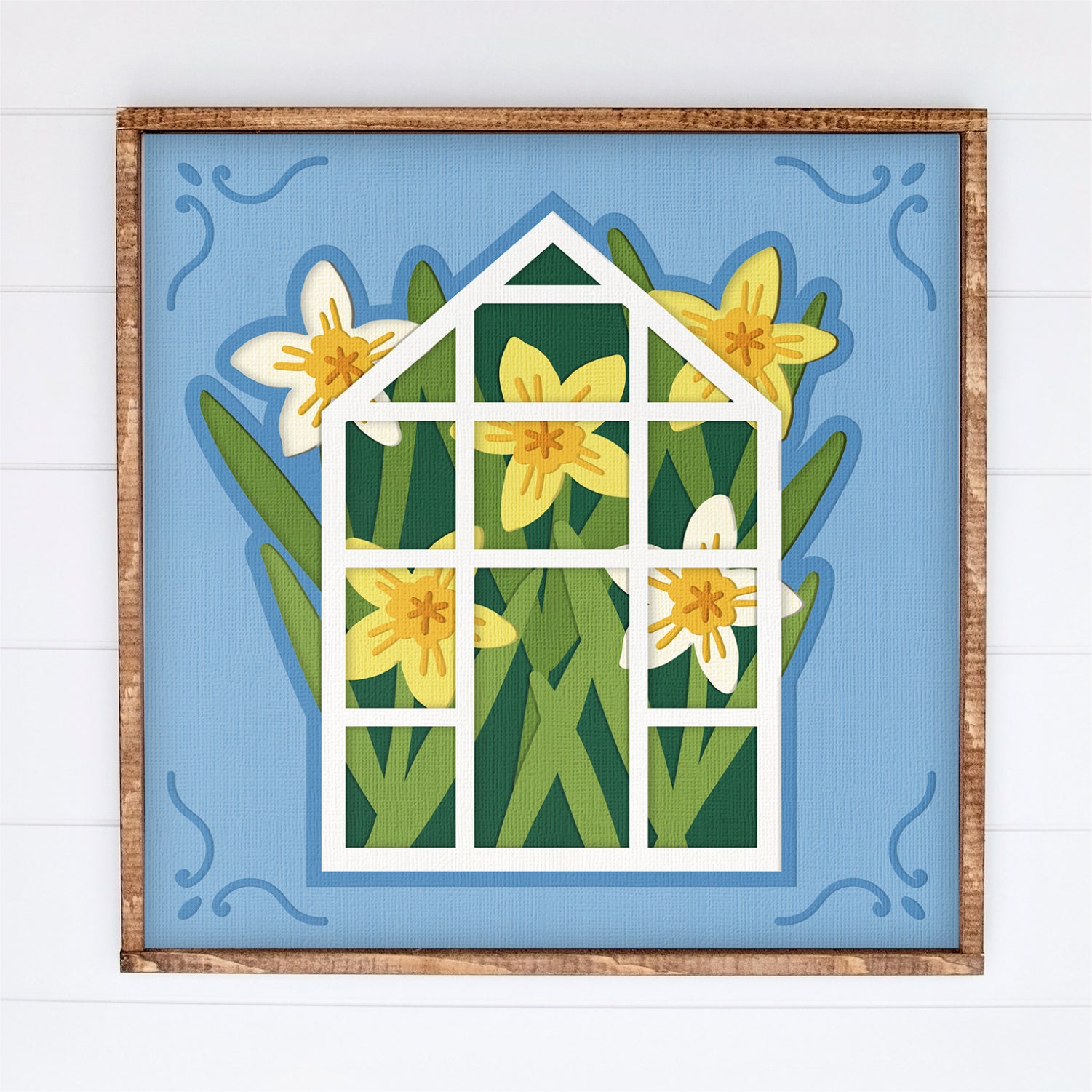 Daffodil Greenhouse Shadow Box - 3D Spring and Easter Shadowbox SVG