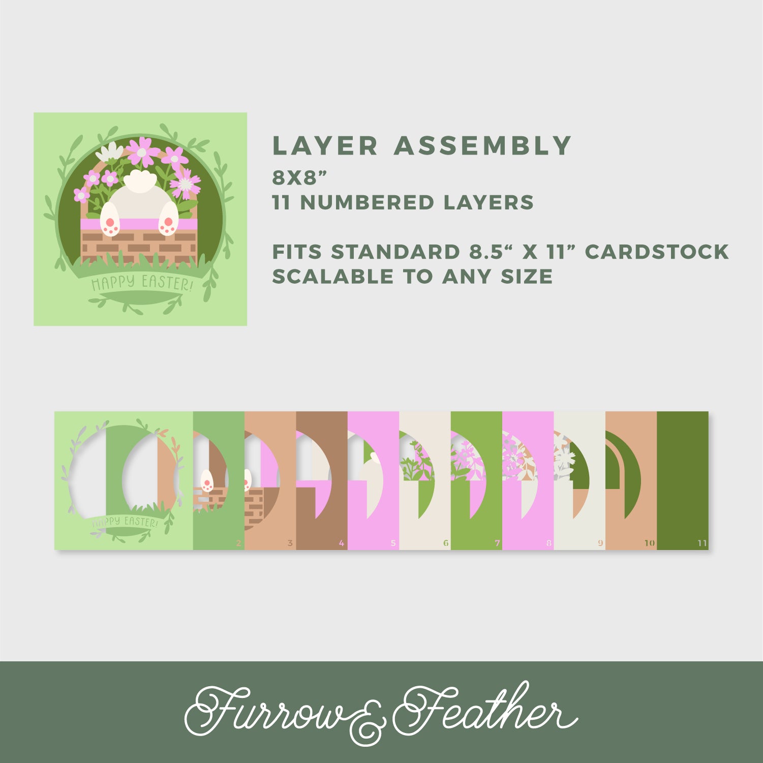 Easter Bunny Bum in Basket Shadow Box - 3D Easter Shadowbox SVG