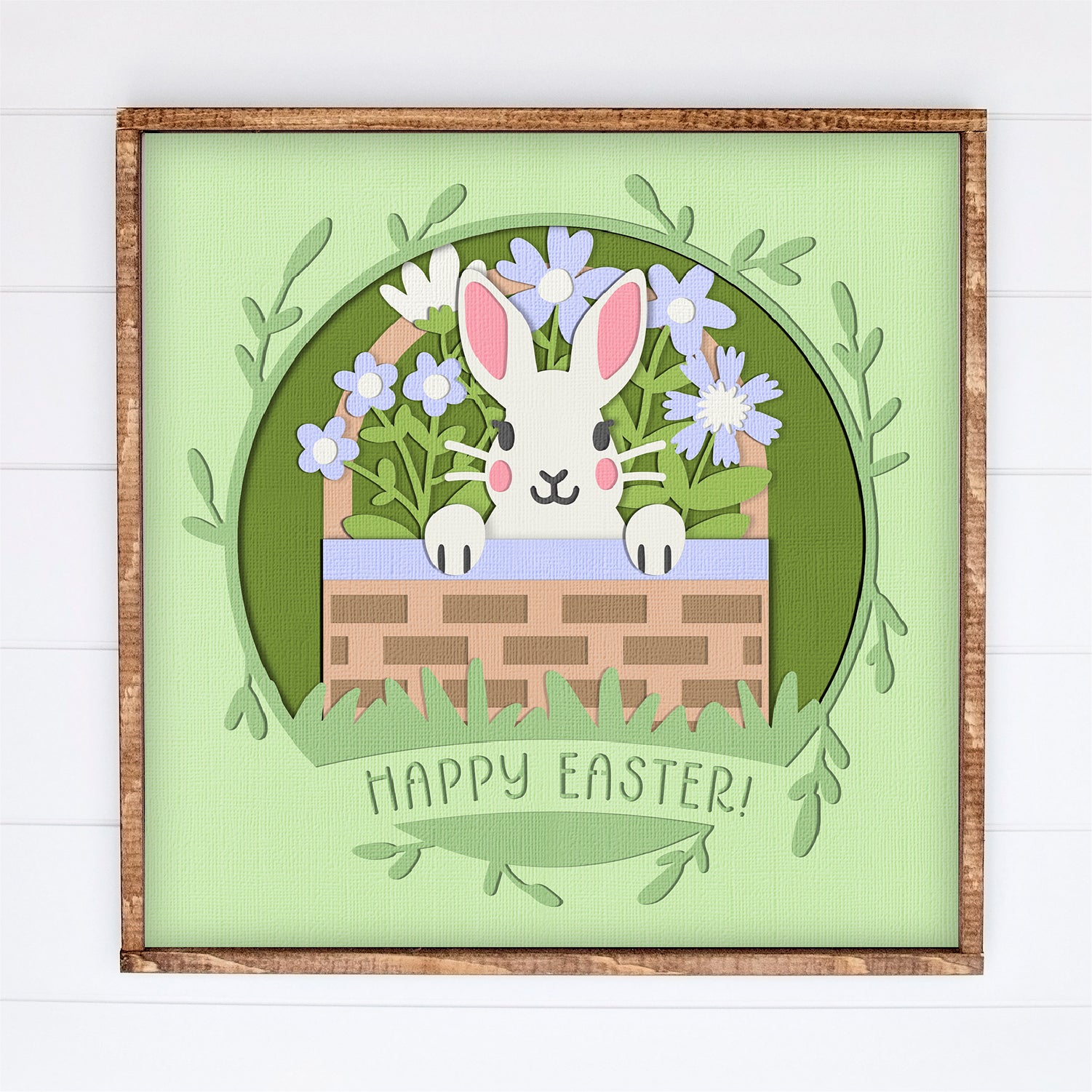Easter Bunny in Basket Shadow Box - 3D Easter Shadowbox SVG