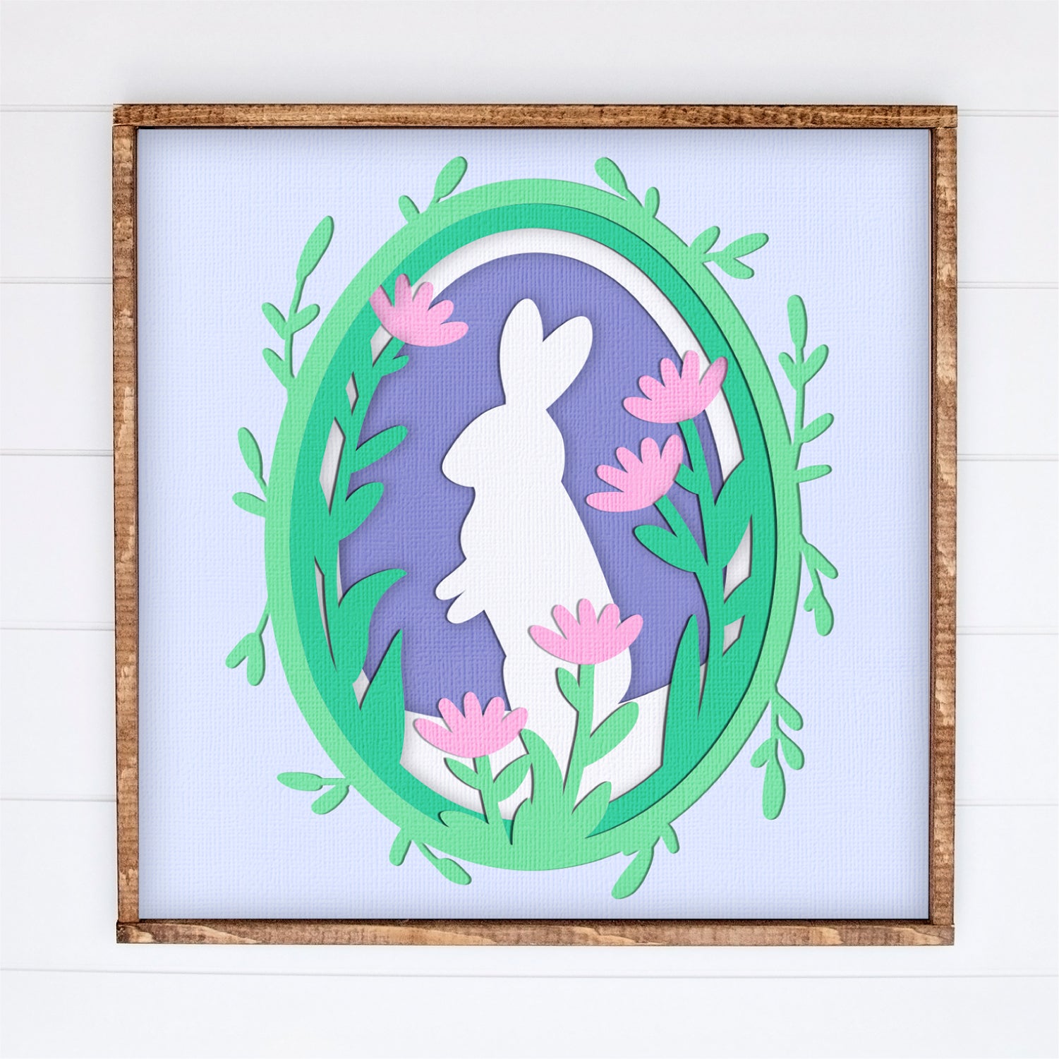 Easter Bunny in Flowers Shadow Box - 3D Easter Shadowbox SVG