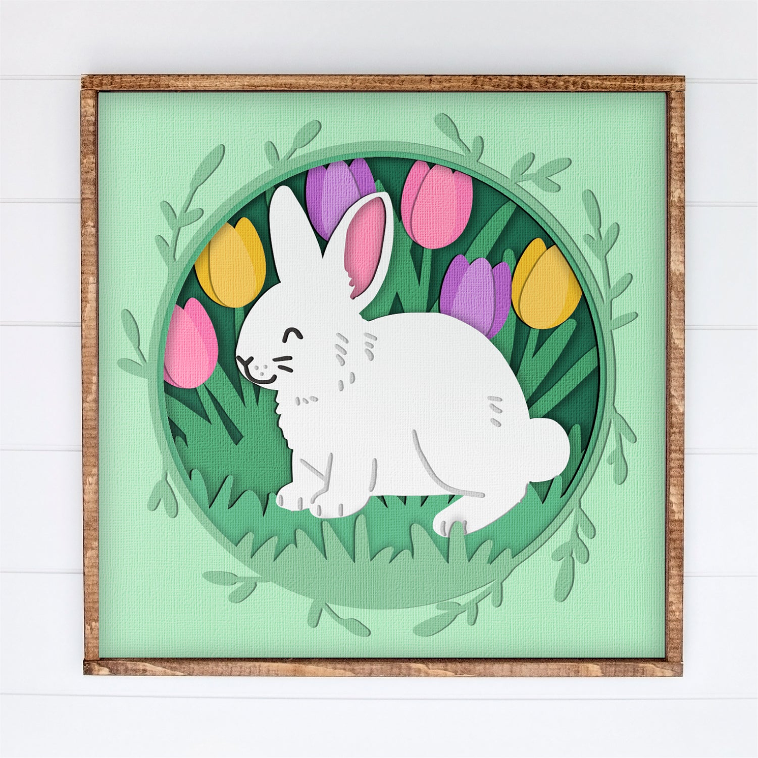 Easter Bunny with Tulips Shadow Box - 3D Easter Shadowbox SVG