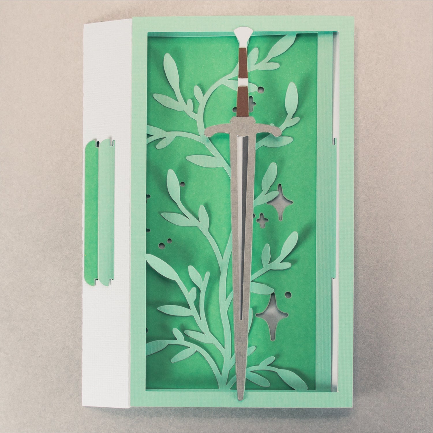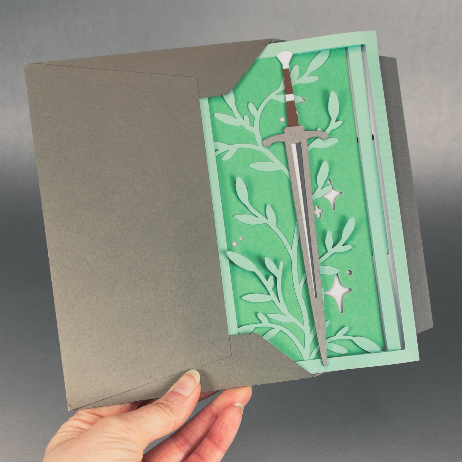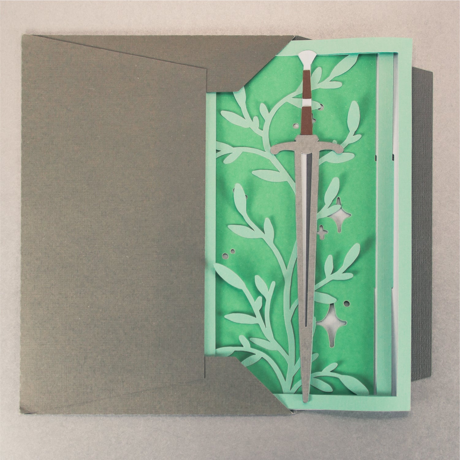 Create a magical card with this Fantasy Sword Card - a 3D any occasion card SVG! I love this card design for a reader, a fantasy nerd, or a D&D player! It works great for a birthday, as a congratulations card, or for any occasion. This design features a sword surrounded by leaves and stars. This cutting file is perfect for Cricut and Silhouette cutting machines. The card folds flat for easy mailing and fits perfectly in the included 5x7” envelope cut file. Explore more of my card designs for even more cute and creative ideas!