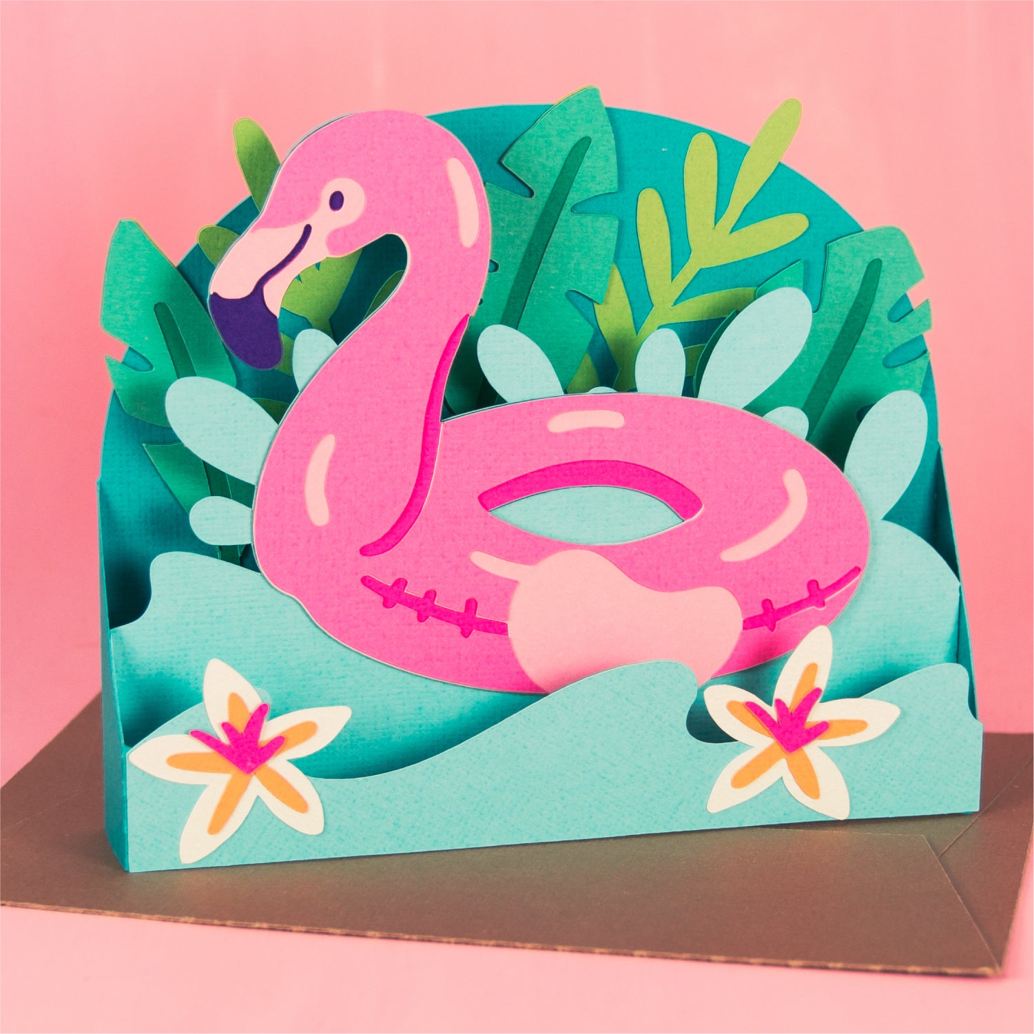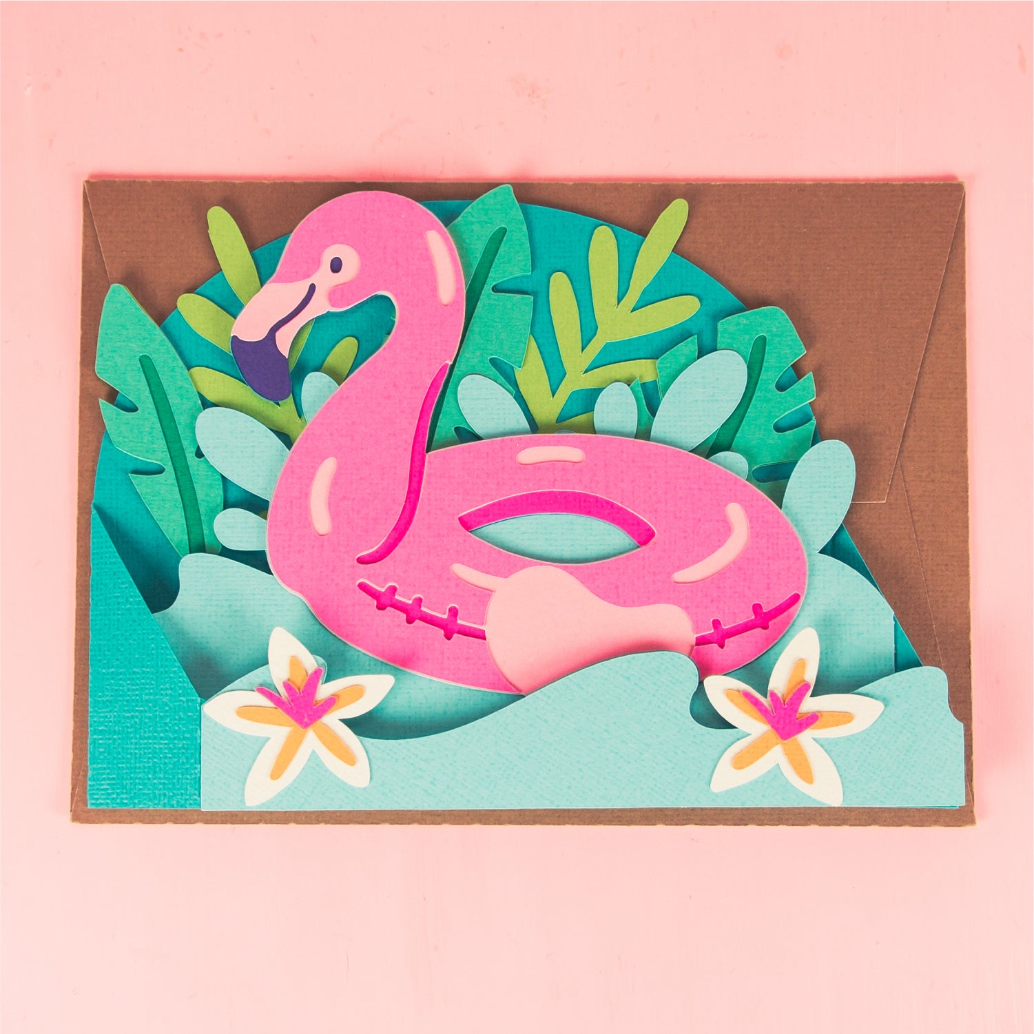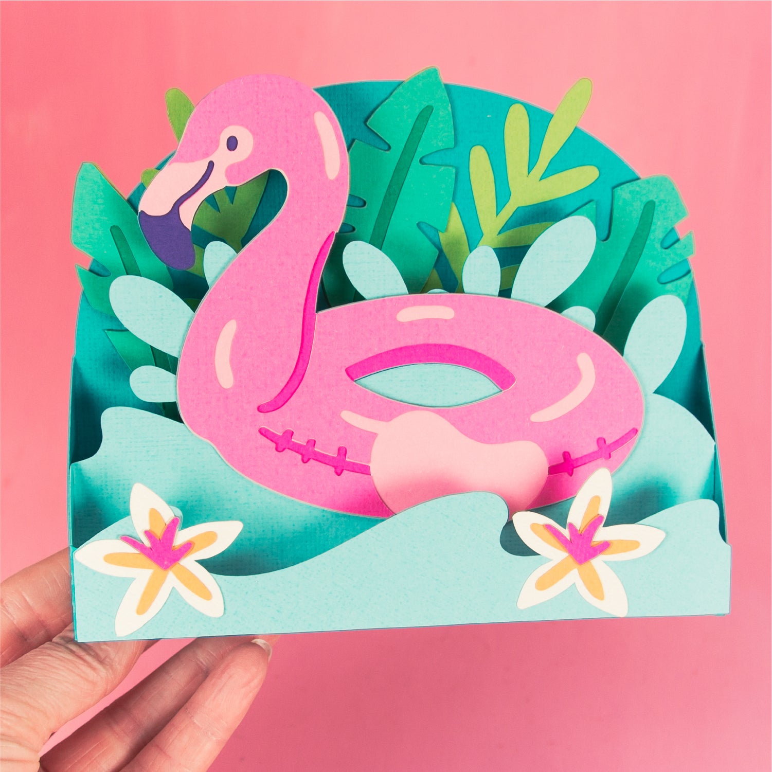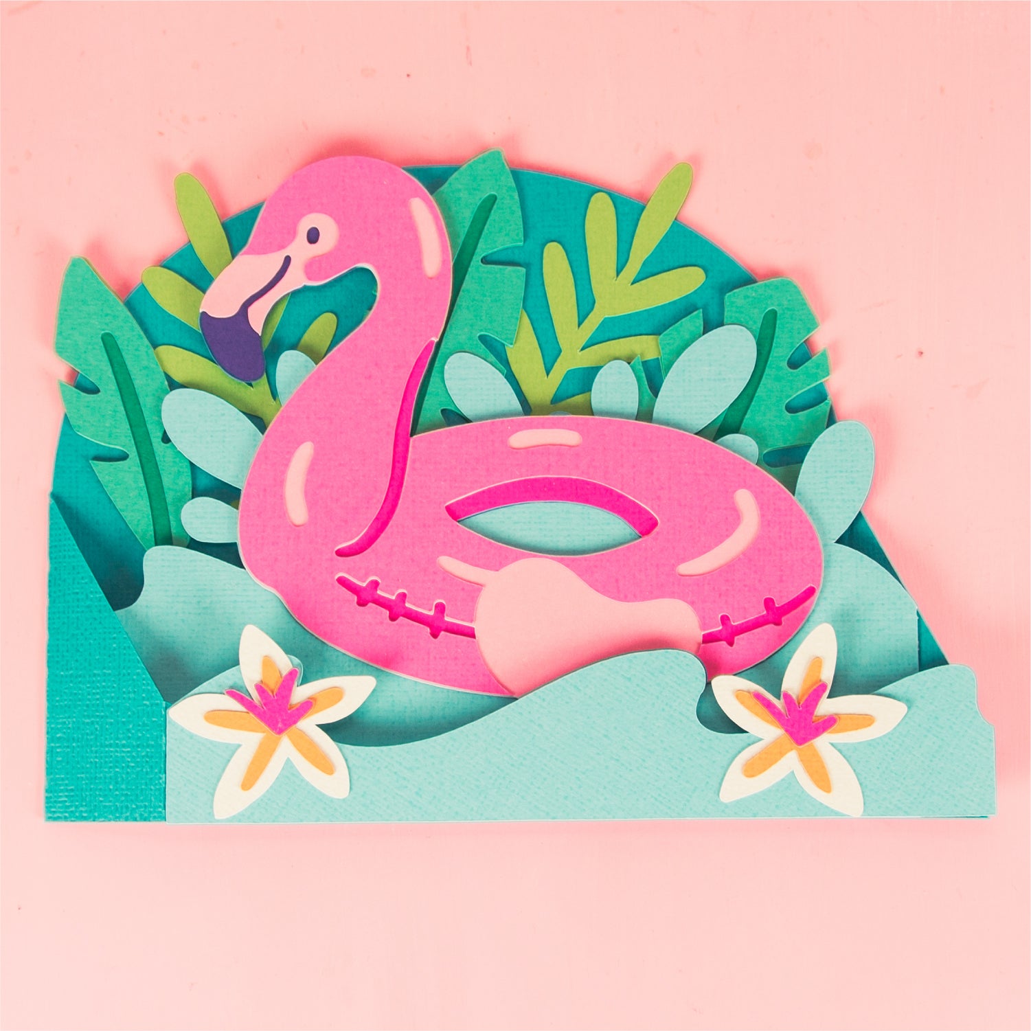 Flamingo Pool Float Card - 3D Summer Card SVG