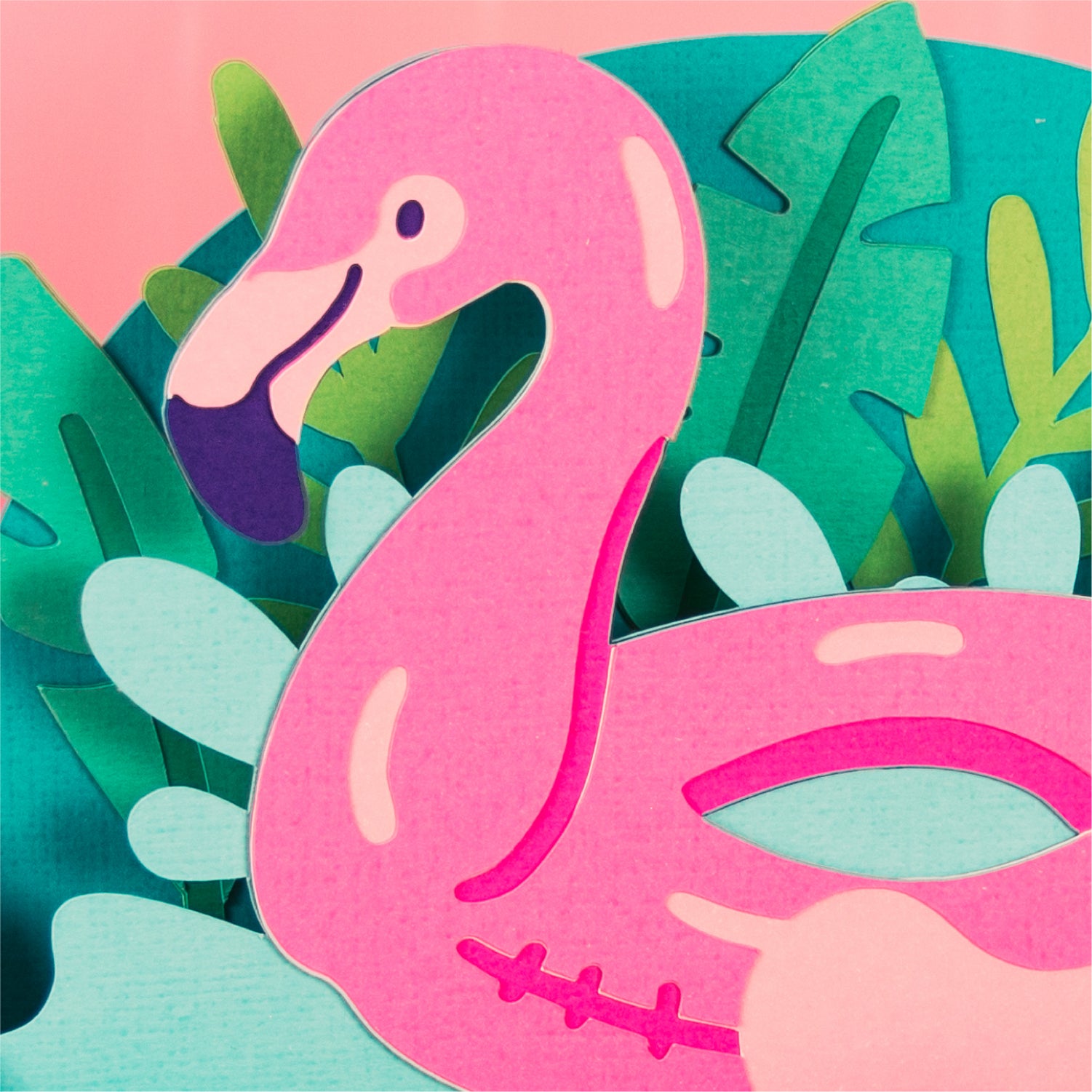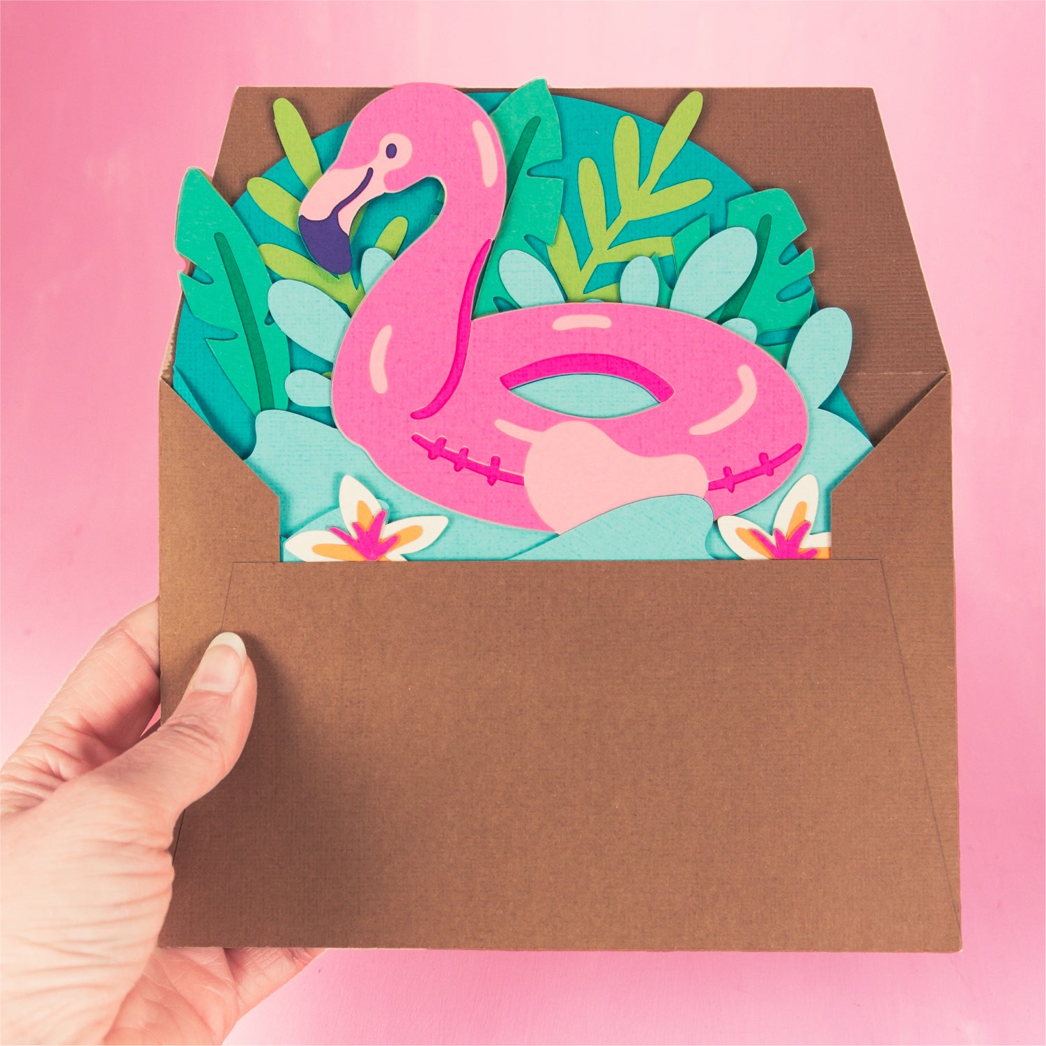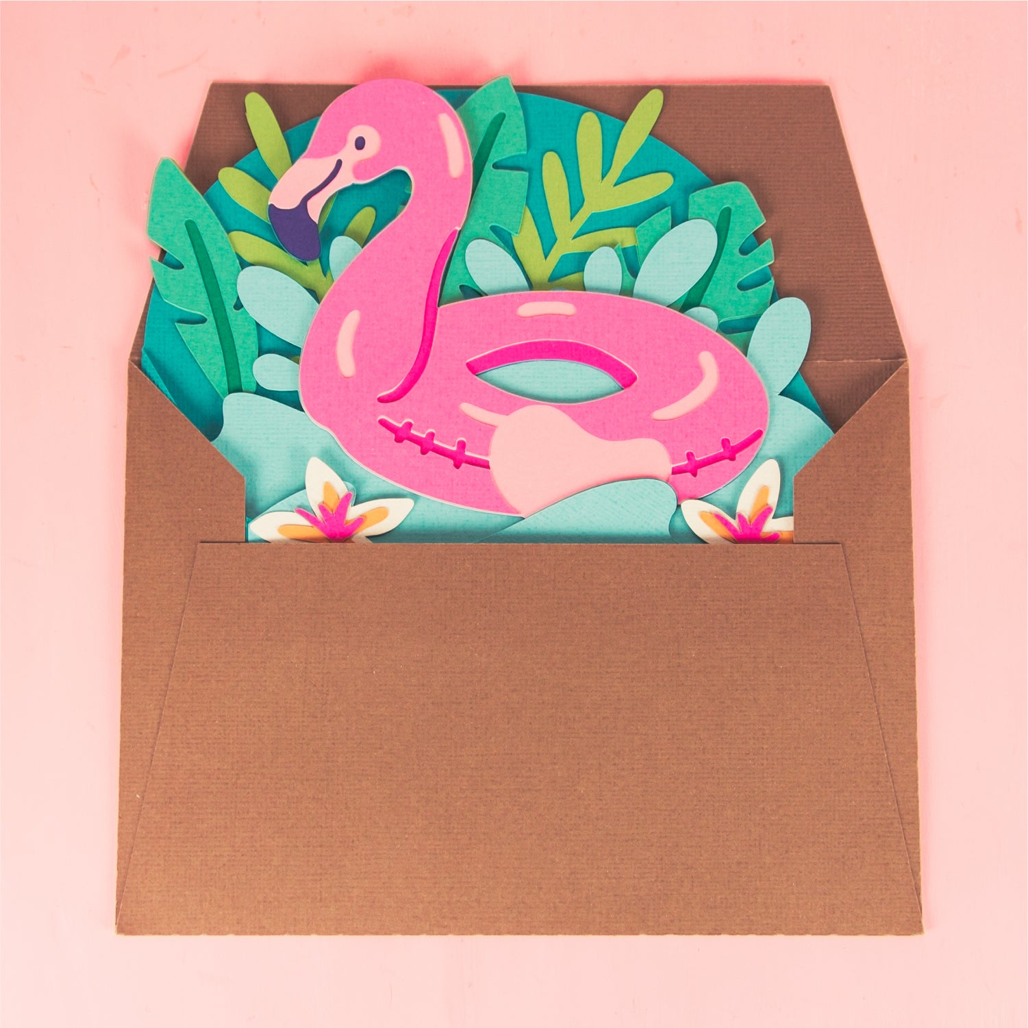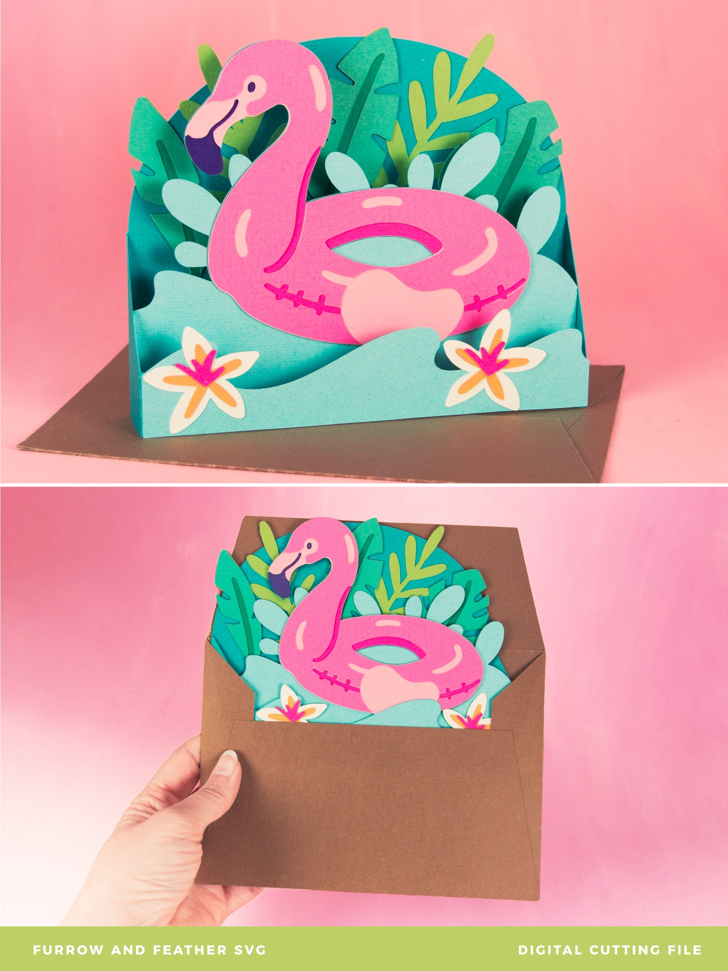 Flamingo Pool Float Card - 3D Summer Card SVG