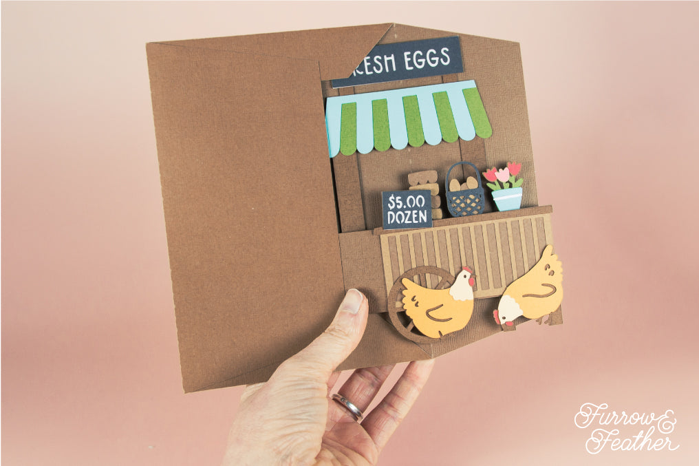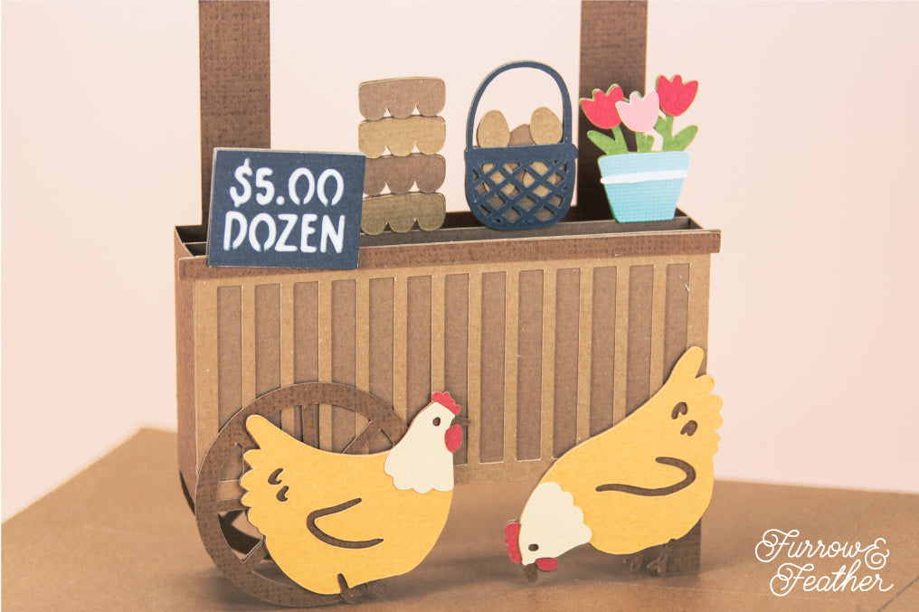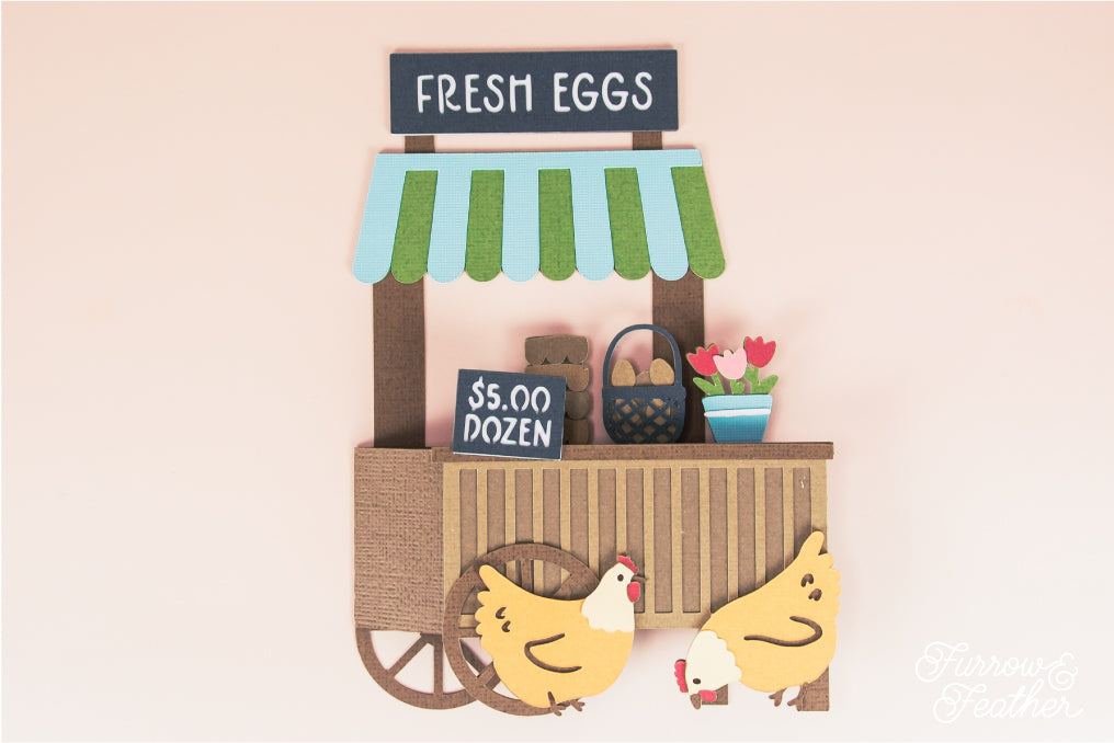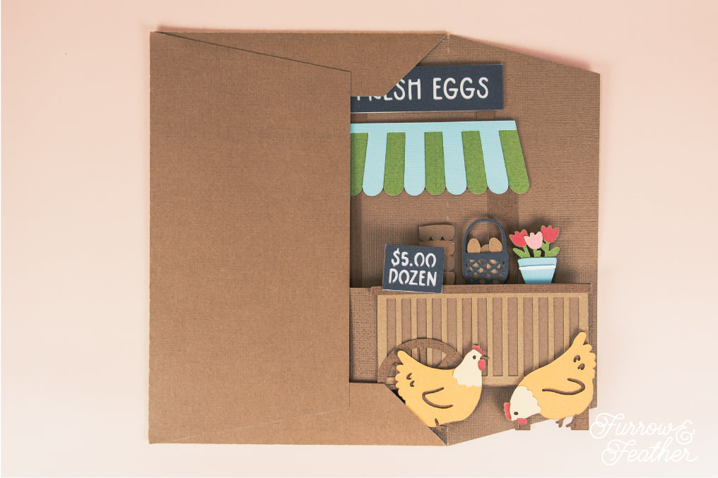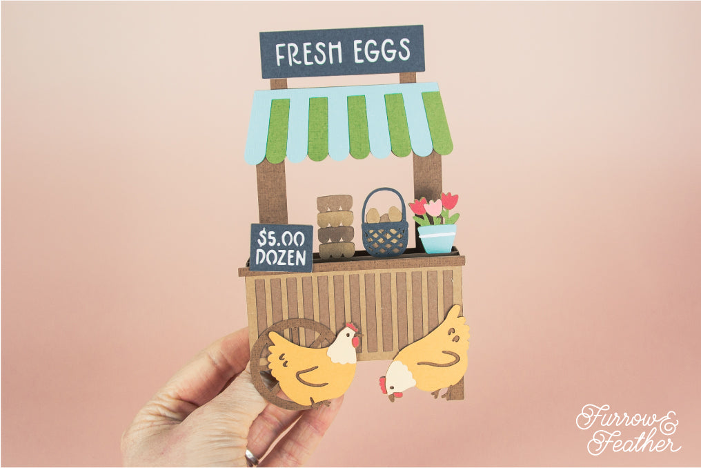 Create an a super fun card with this Fresh Eggs Stand Card - a 3D Card SVG! Featuring an egg stand with some chickens, this cutting file is perfect for Cricut and Silhouette cutting machines. The card folds flat for easy mailing and fits perfectly in the included 5x7” envelope cut file. Change the color of the awning and chickens for a more customized look! Explore more of my birthday card designs for even more cute and creative ideas!