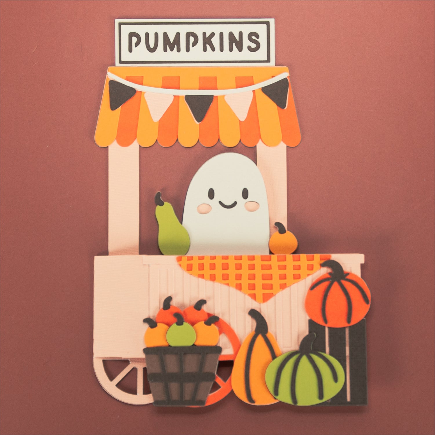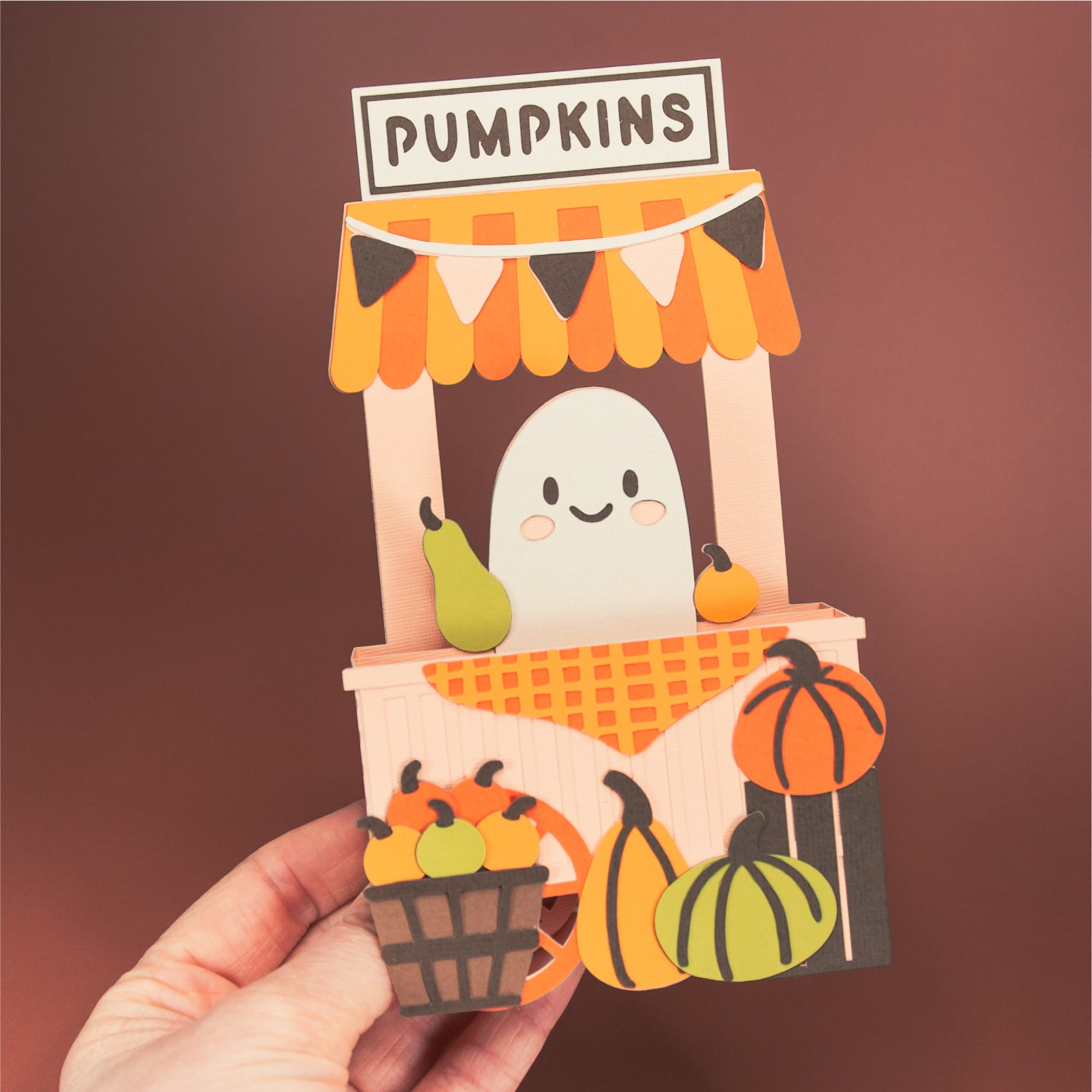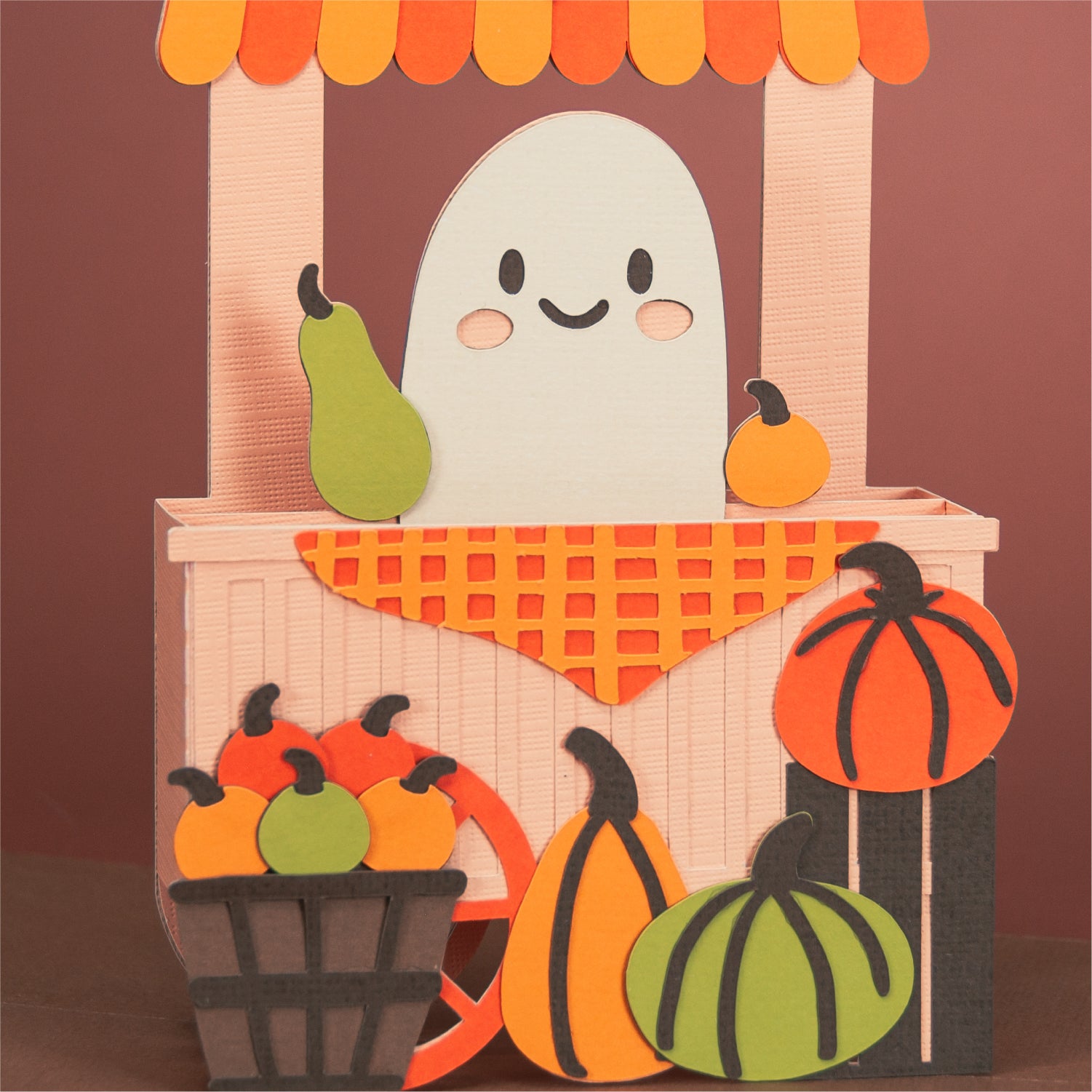 Ghost Pumpkin Stand Card - 3D Halloween Card SVG