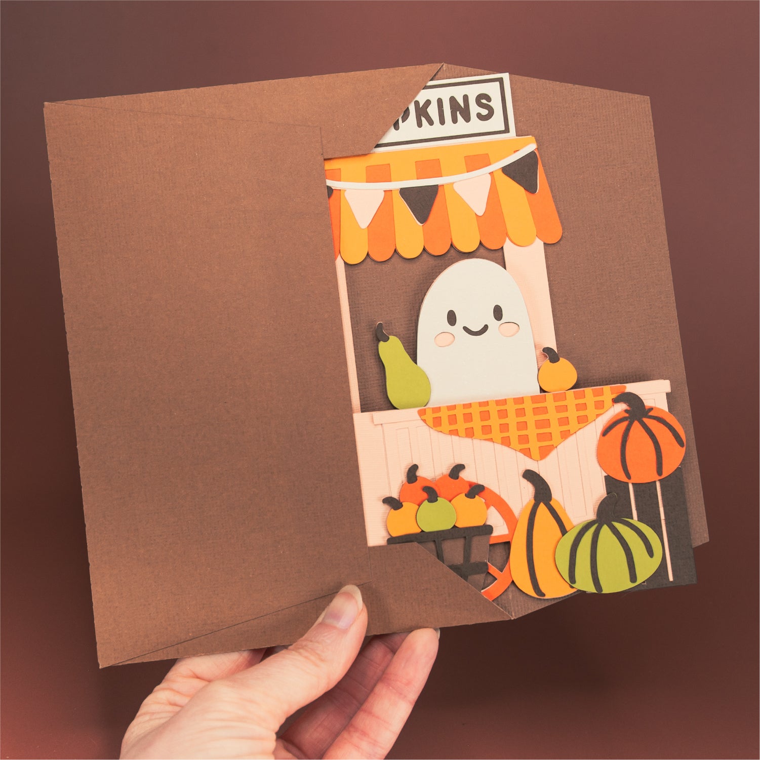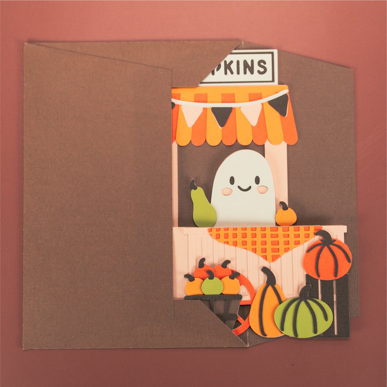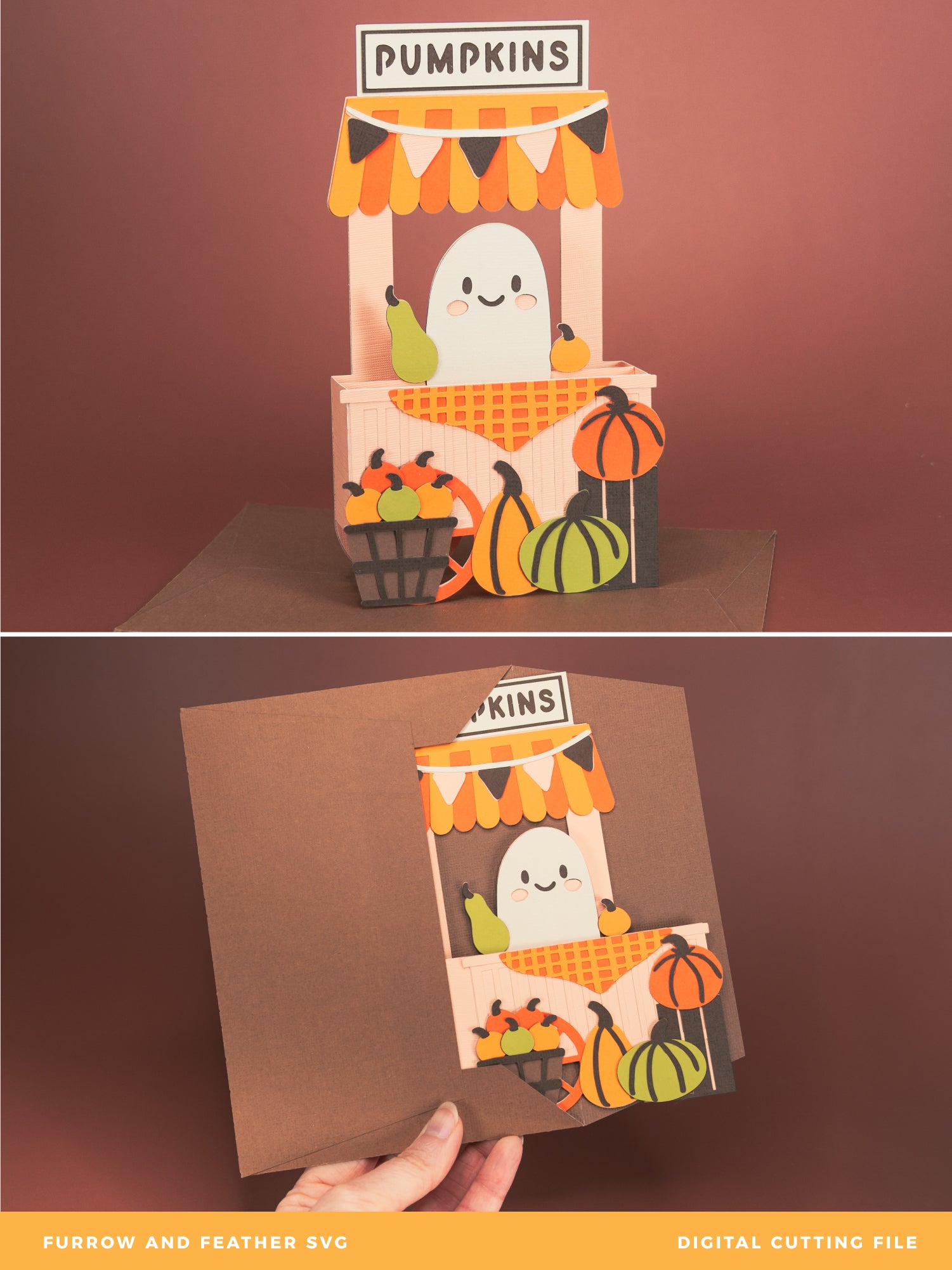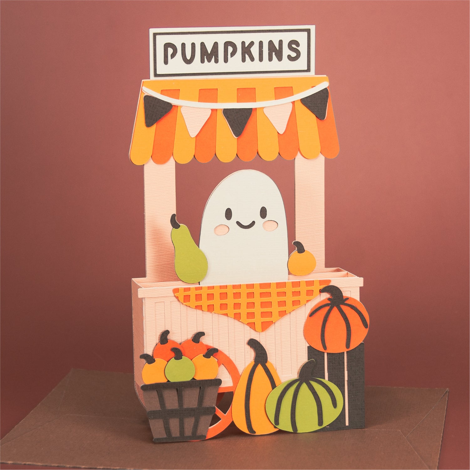Ghost Pumpkin Stand Card - 3D Halloween Card SVG