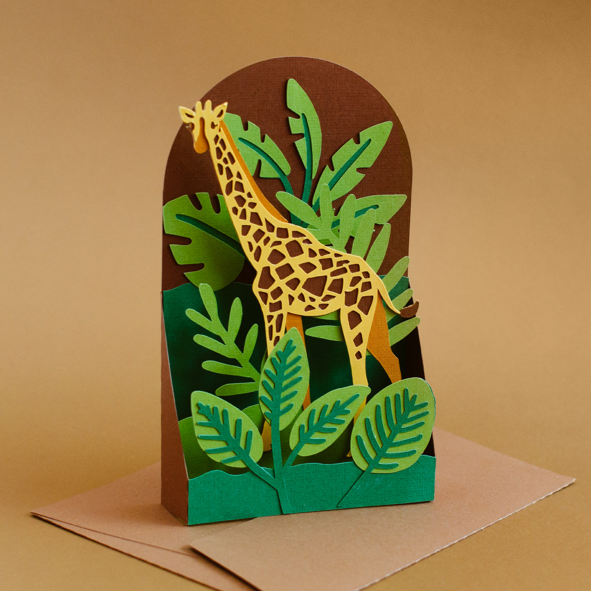 This card would be great for a child’s birthday card! Cut the leaves out of patterned paper for a unique look. Folds flat to fit in the included 5x7” envelope cut file.