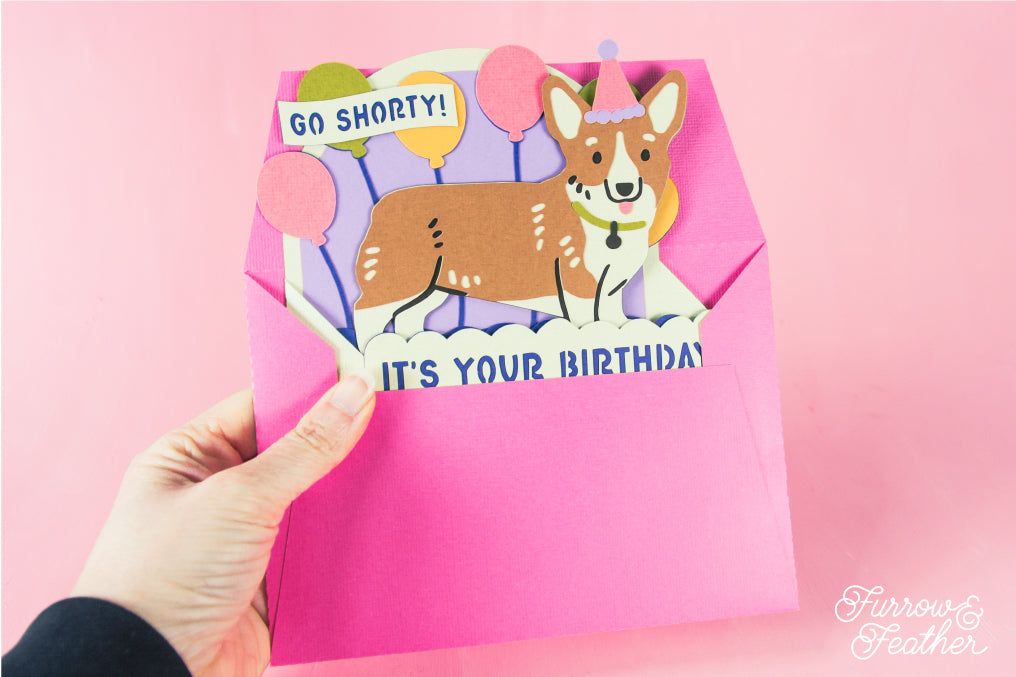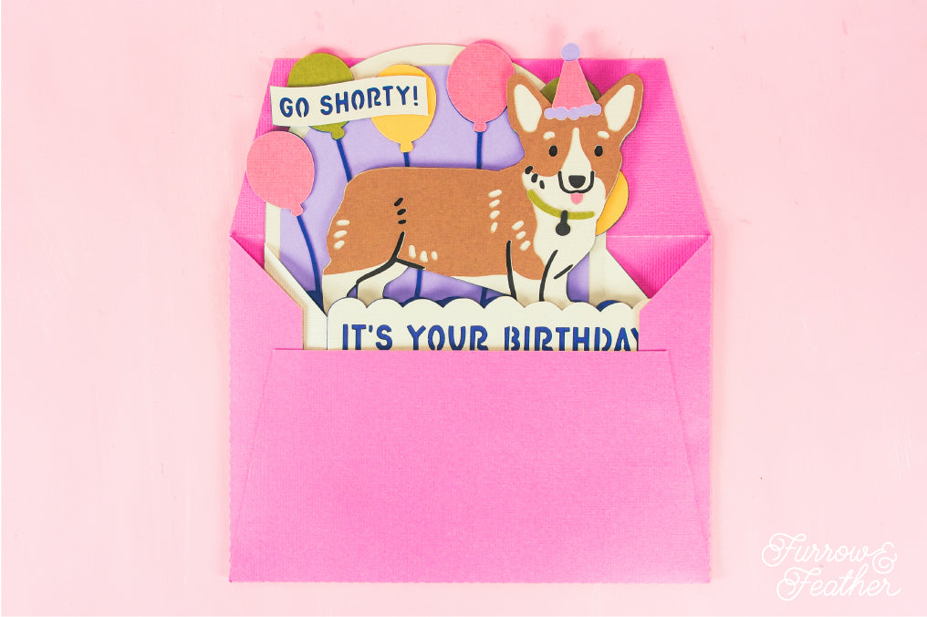 Create an adorable birthday card with this 'Go Shorty, It's Your Birthday' - Corgi Birthday Card SVG! This file includes optional numbers for the balloons, and a plain 'front piece' if you want to include your own phrase. Featuring an adorable corgi puppy in front of some colorful balloons, this card is perfect for Cricut and Silhouette cutting machines. This design folds flat for easy mailing and fits perfectly in the included 5x7” envelope cut file. Explore more of my birthday card designs for even more cute and unique crafting ideas!
