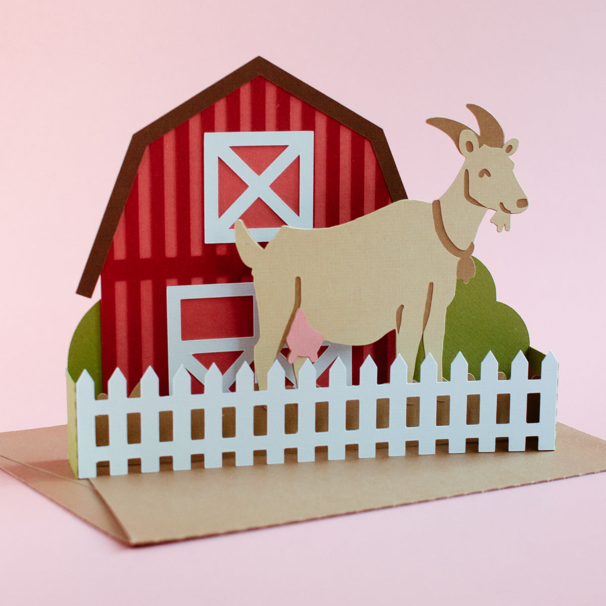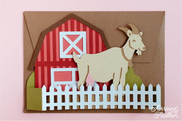 Such a fun card for your favorite farmer! Change the colors of the goat to match one from your own herd, or draw on moon spots! Includes a white piece for the back so you can write a note! Folds flat to fit in the included 5x7” envelope cut file.