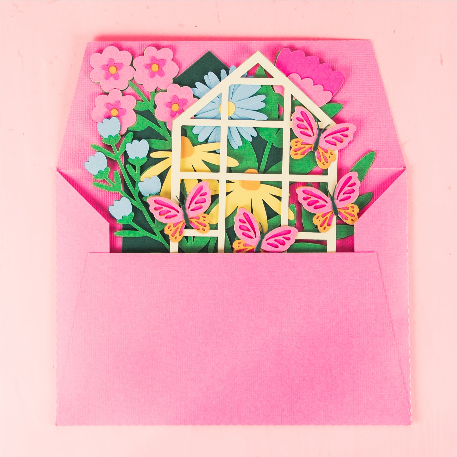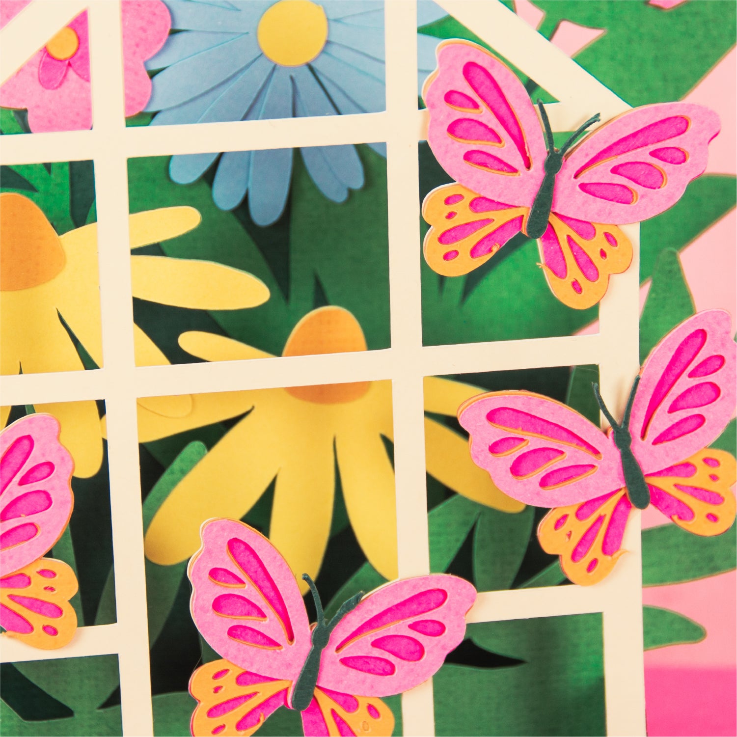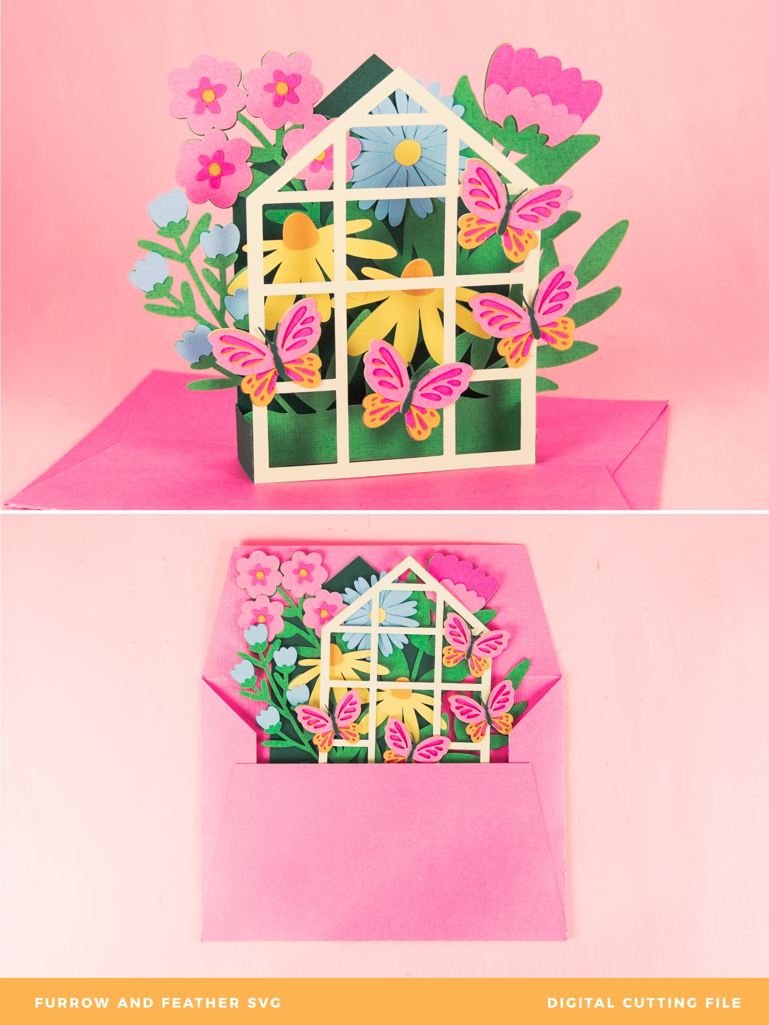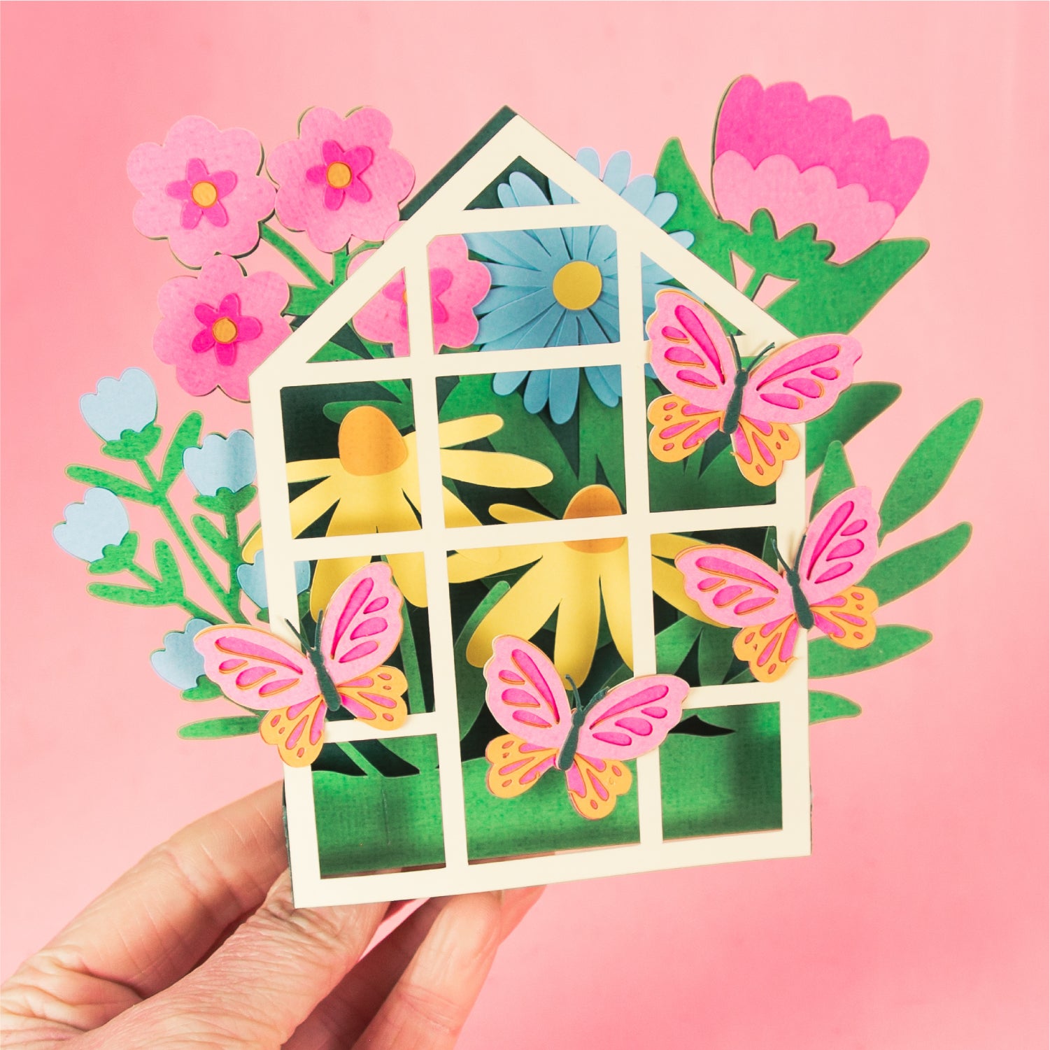 Greenhouse with Butterflies Card - 3D Flower Card SVG