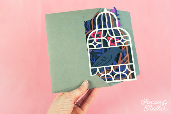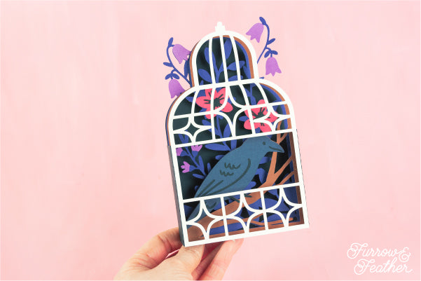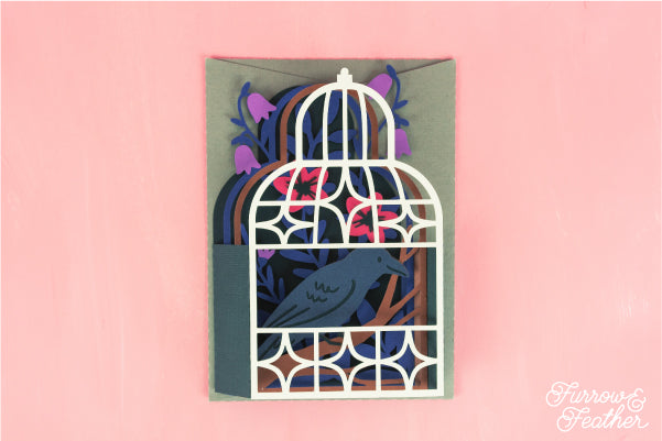 Halloween Crow in Gothic Cage Card SVG