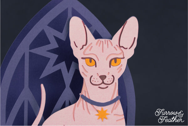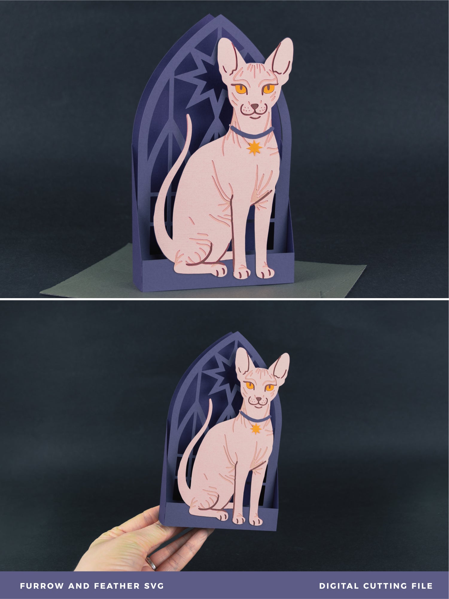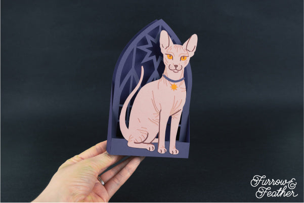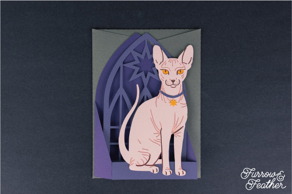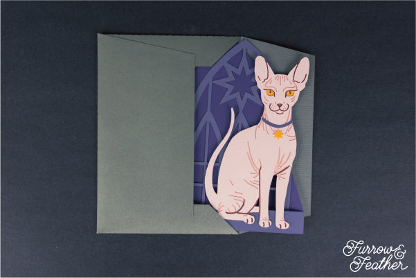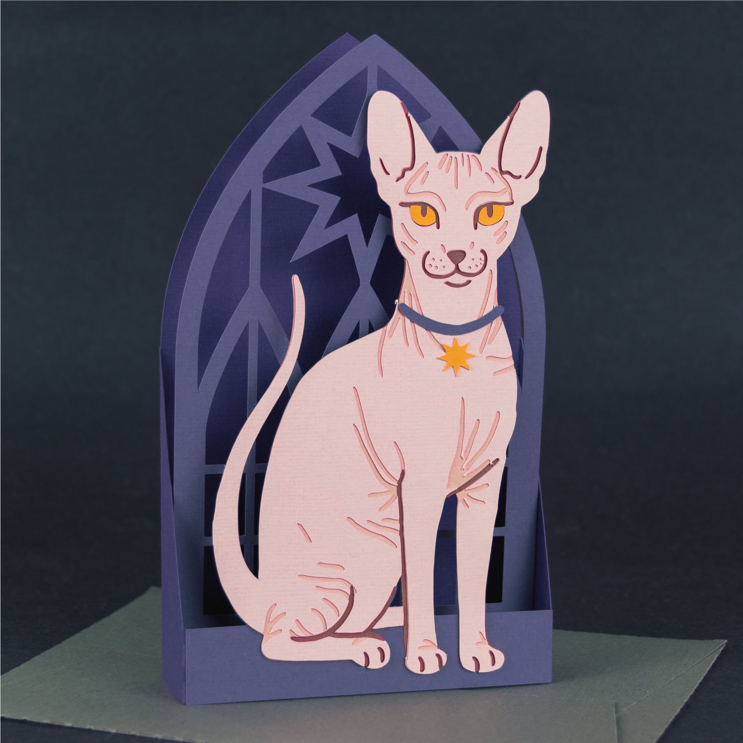 I love this hairless sphynx cat card for Halloween! It would also work great as a birthday card for your gothic or witchy friend. Folds flat to fit in the included 5x7” envelope cut file.