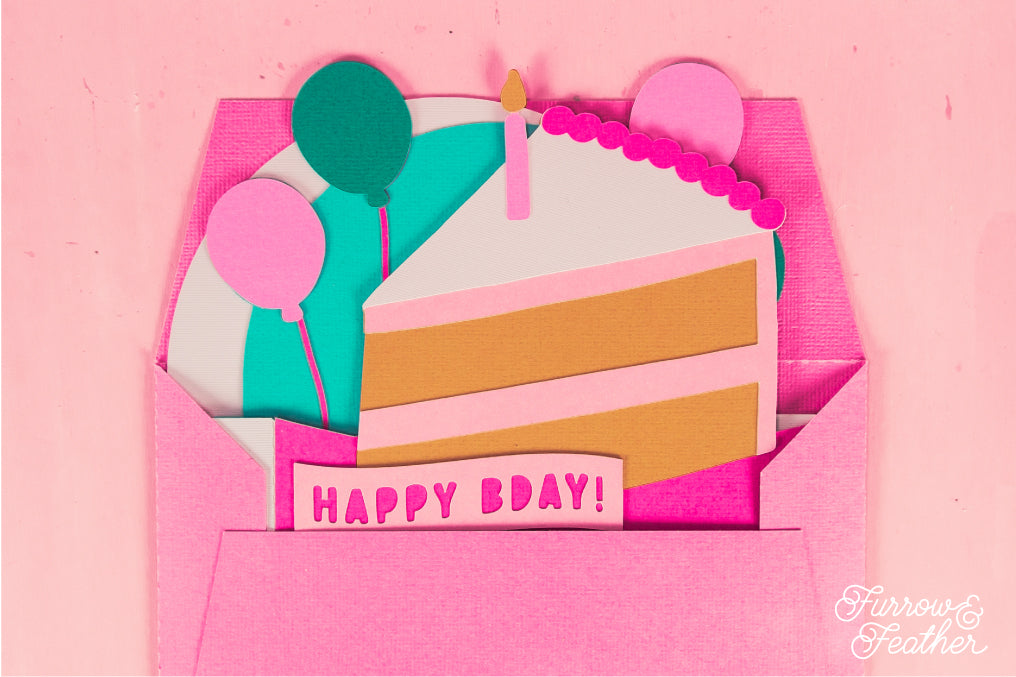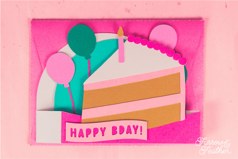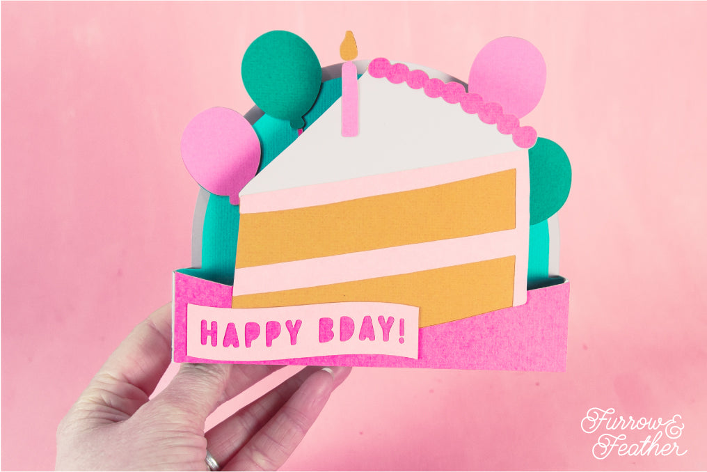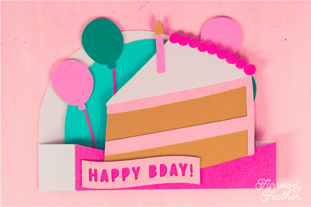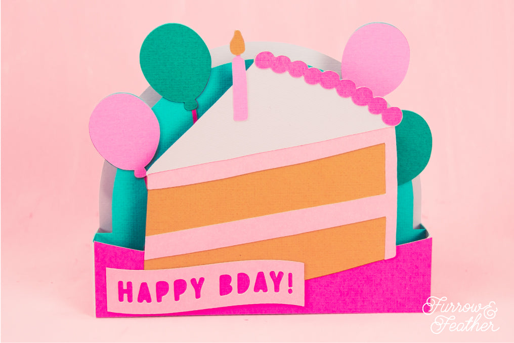 Happy Bday Cake Slice Card - 3D Birthday Card SVG
