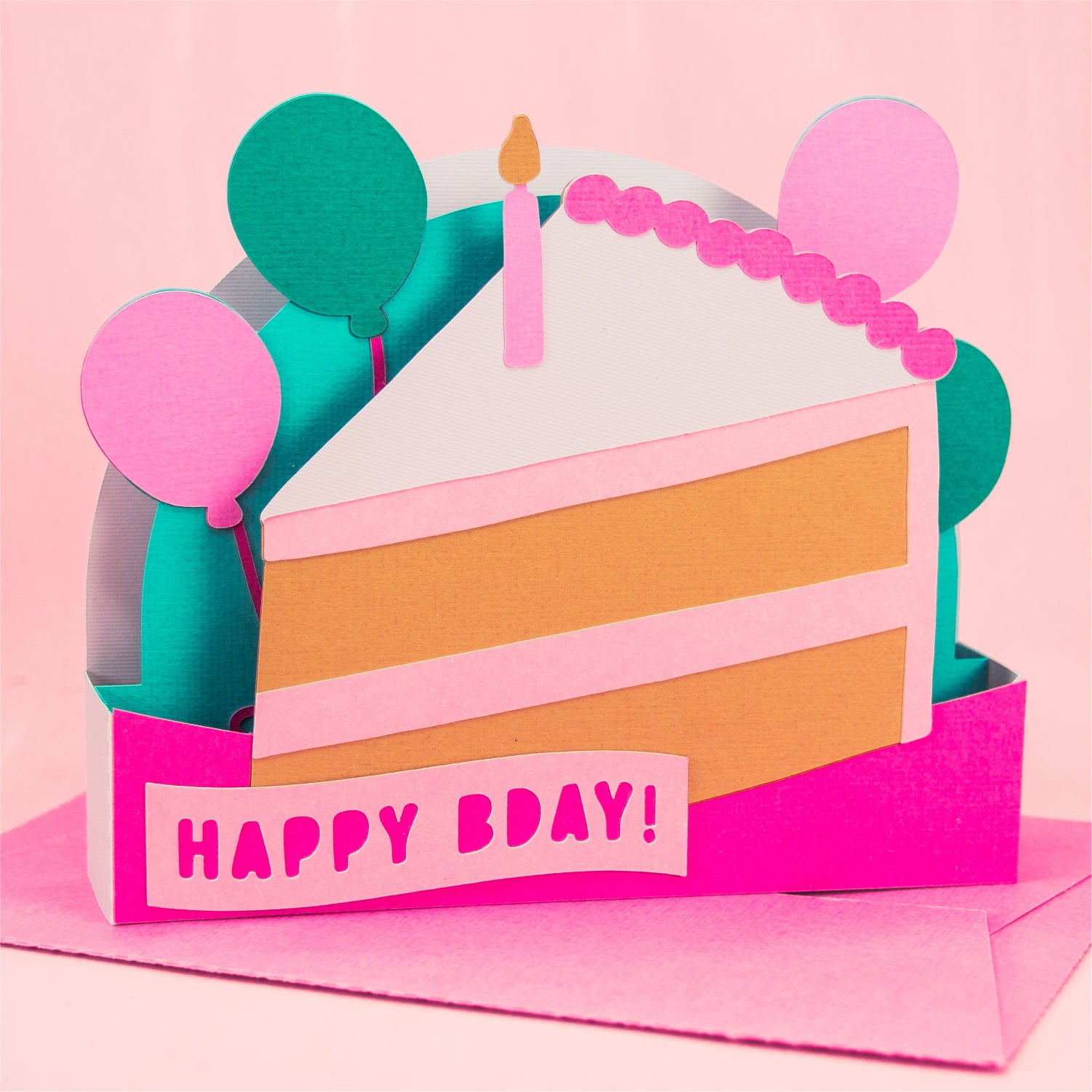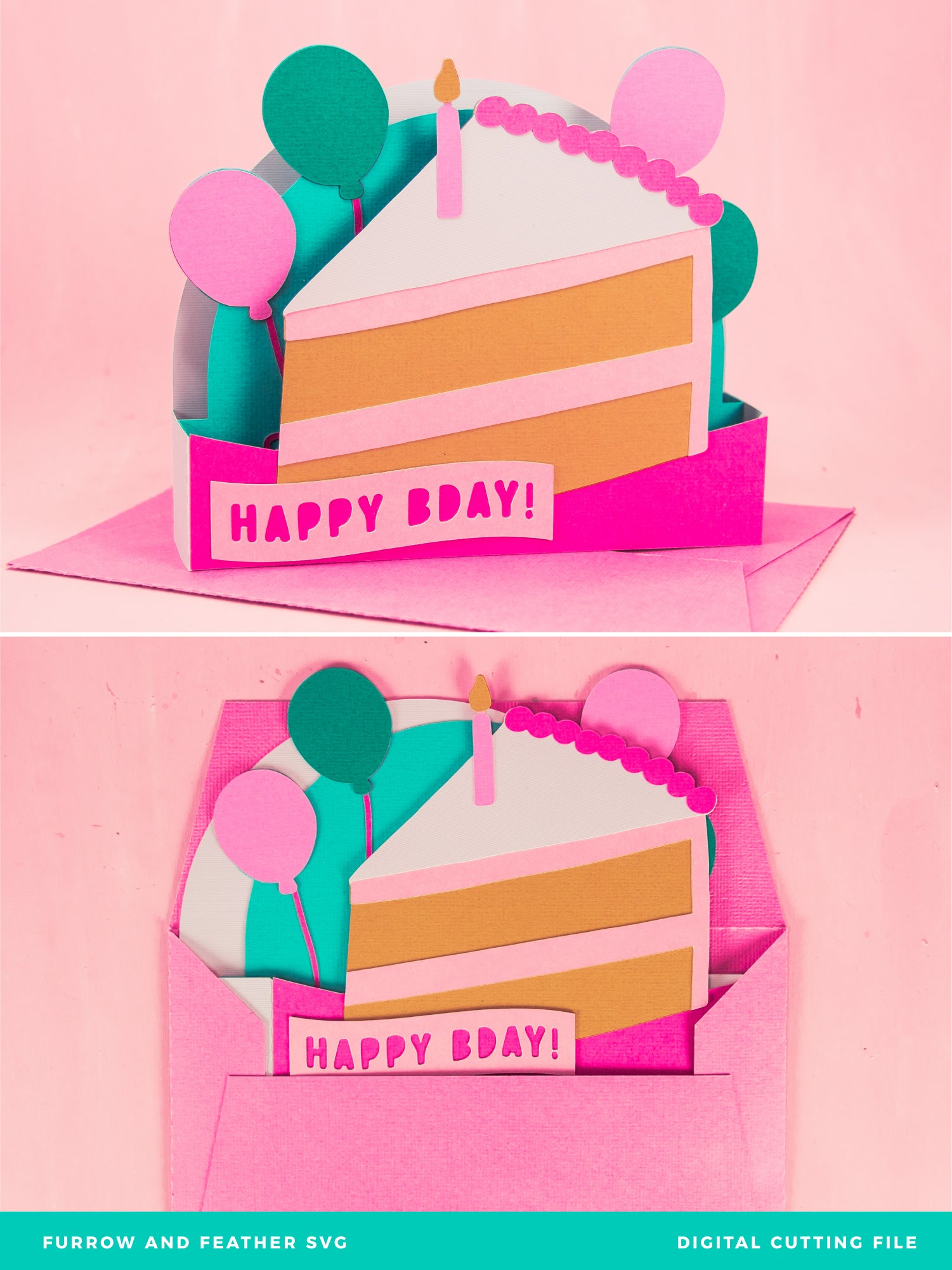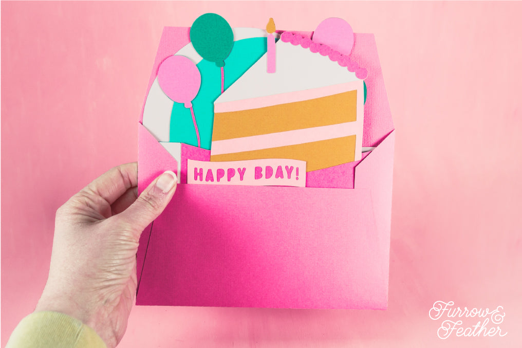 Happy Bday Cake Slice Card - 3D Birthday Card SVG