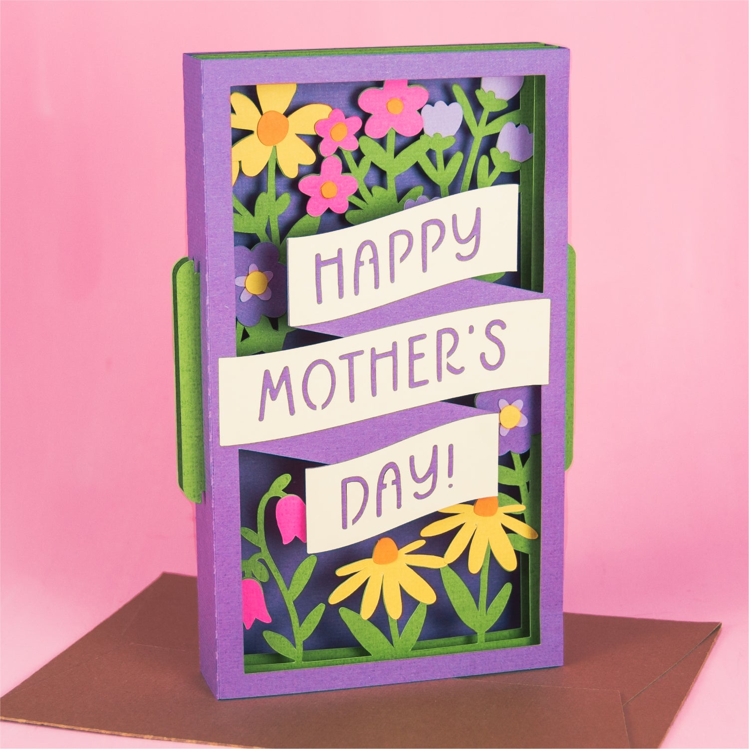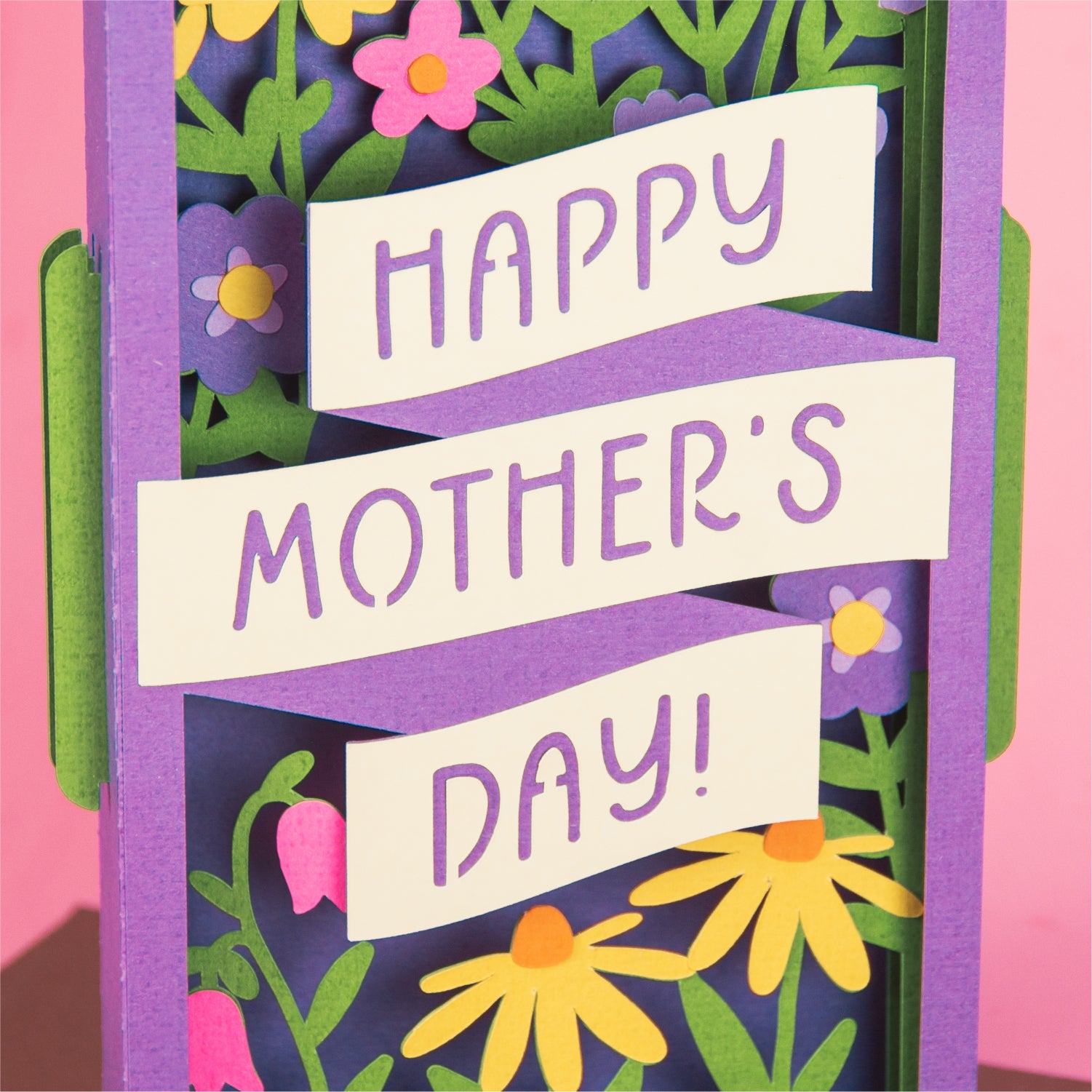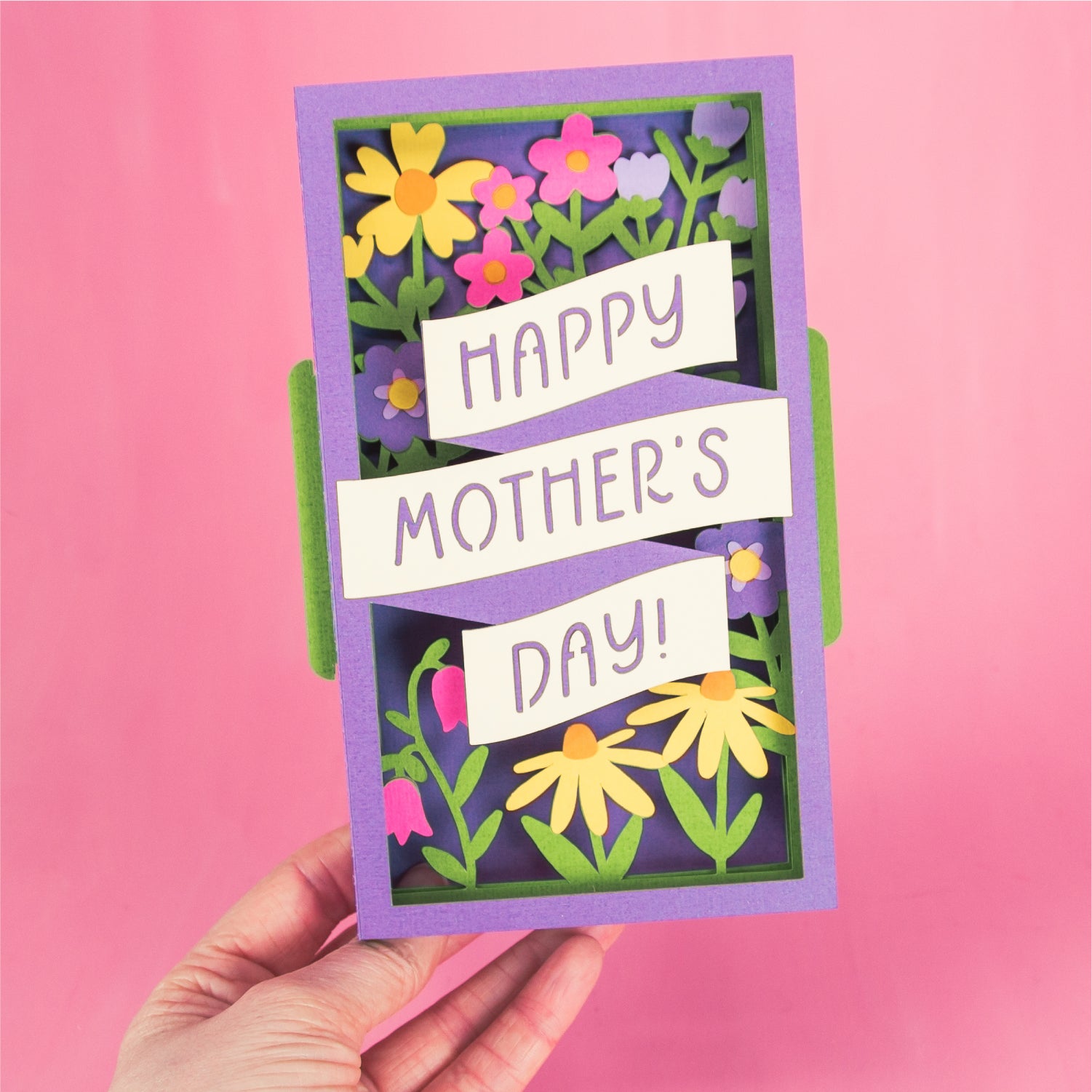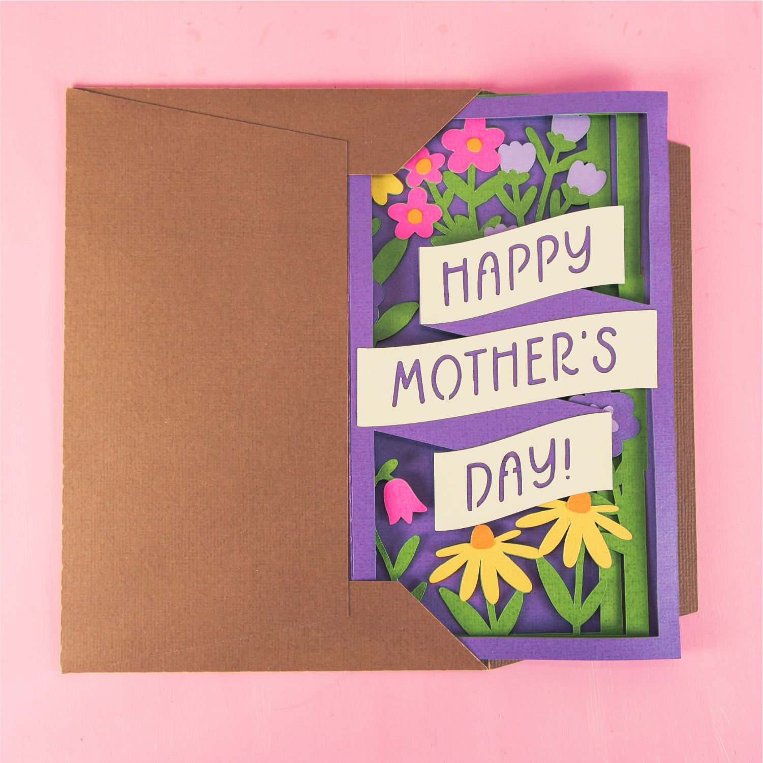 Create a stunning card for Mother's Day with this Happy Mother's Day Card - a 3D SVG! This is a gorgeous card for mom, grandma, a friend, or a sister! I love updating the flower colors to match their favorite flowers. This cutting file is perfect for Cricut and Silhouette cutting machines. The card folds flat for easy mailing and fits perfectly in the included 5x7” envelope cut file. Explore more of my card designs for even more cute and creative ideas!