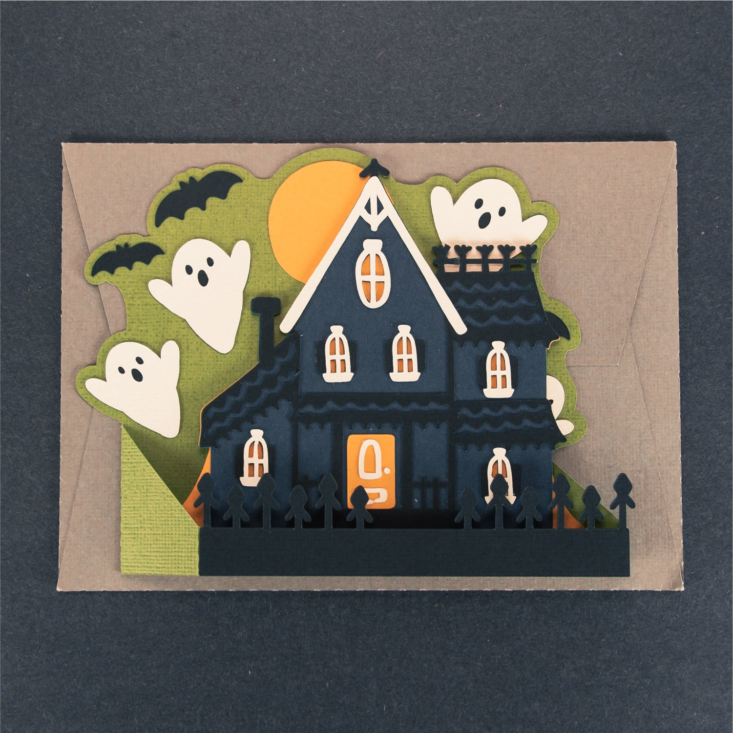 Haunted House with Ghosts Card - 3D Halloween SVG