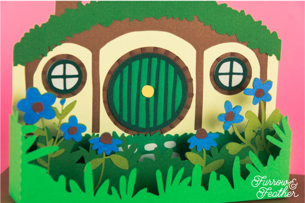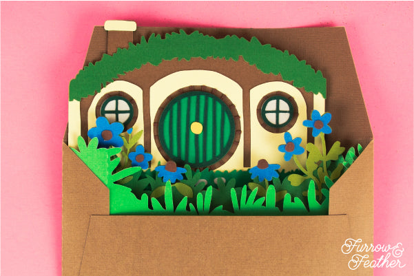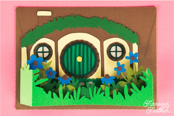 The cutest card for your favorite Lord of the Rings fan! Send a little piece of the shire & hobbiton. You can change the color of the flowers & add your own sentiment! Folds flat to fit in the included 5x7” envelope cut file.