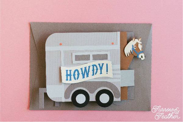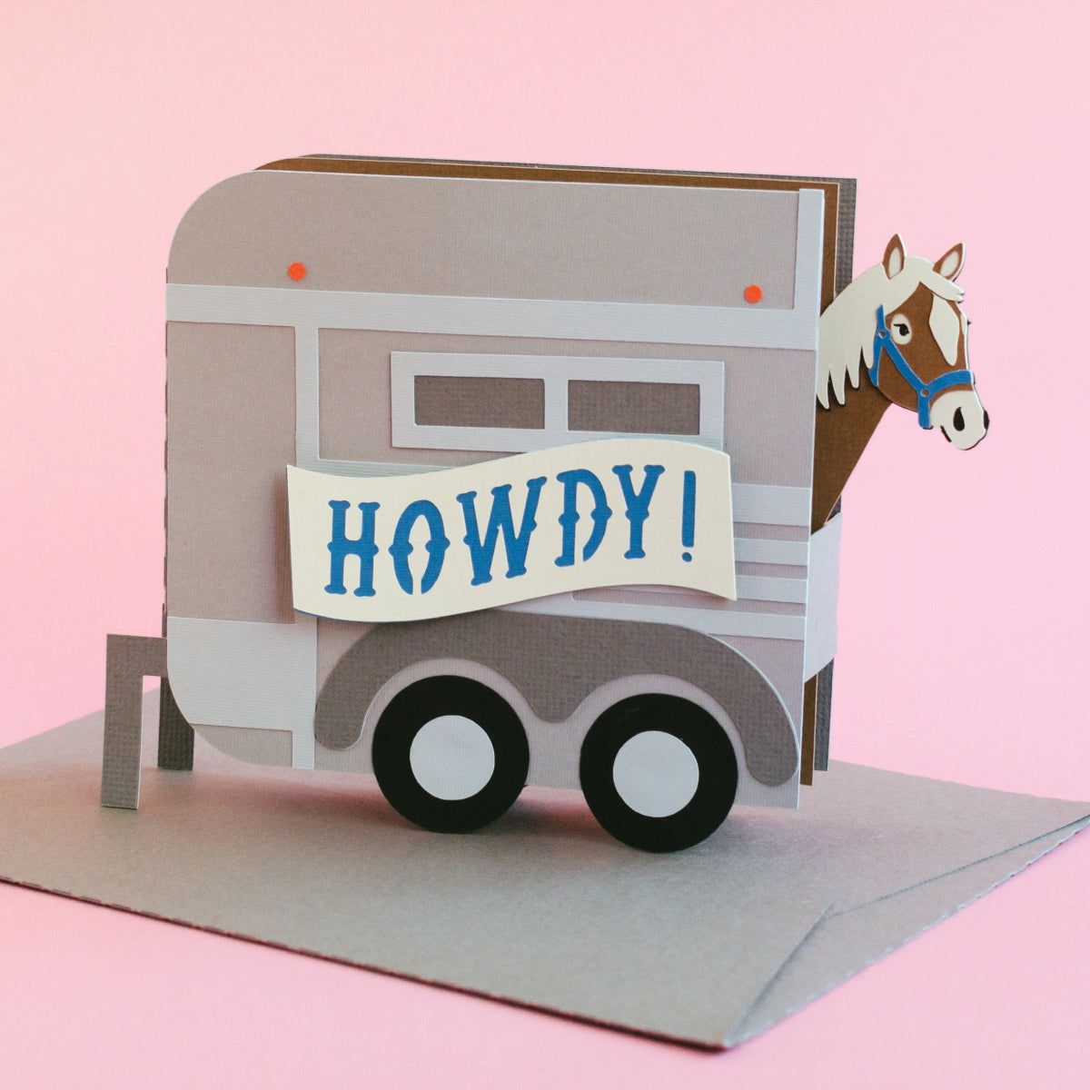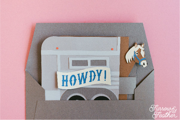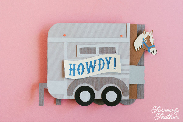 Howdy! This is a super fun card for your favorite equestrian! Change the colors of the horse to match one from your own herd. Lots of different pieces for customization. Folds flat to fit in the included 5x7” envelope cut file.
