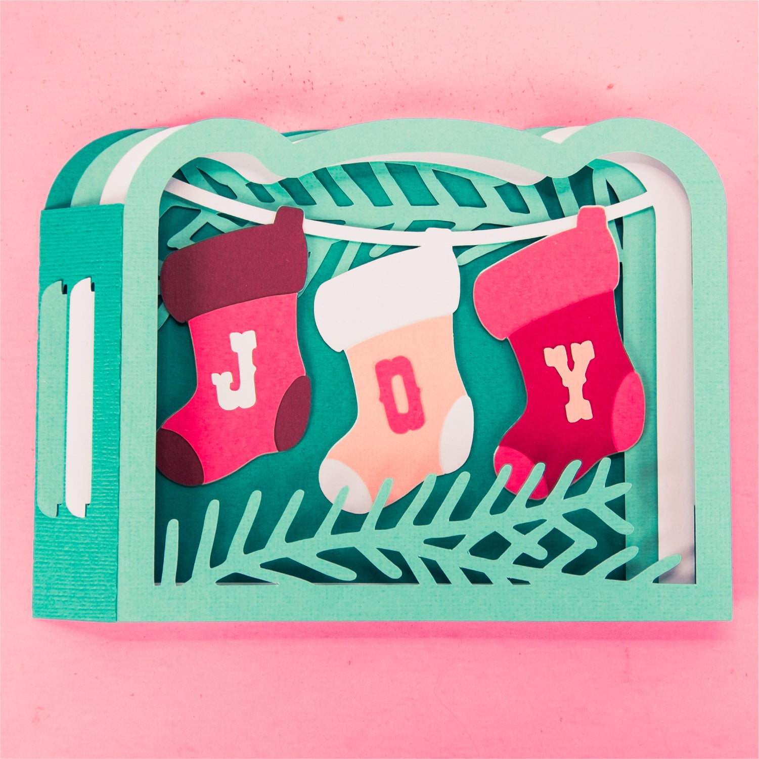 Joy Stockings Card - 3D Christmas Card SVG