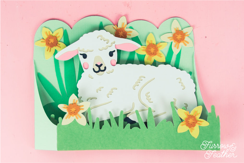 Lamb in Daffodils Card - Easter Card SVG