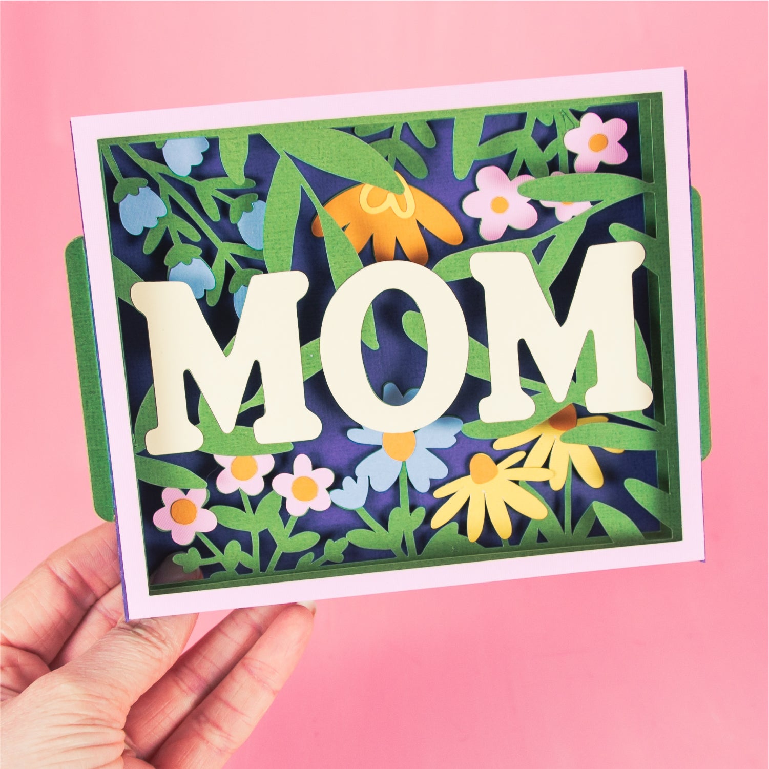 Layered Mom Card with Flowers - 3D Mother's Day Card SVG