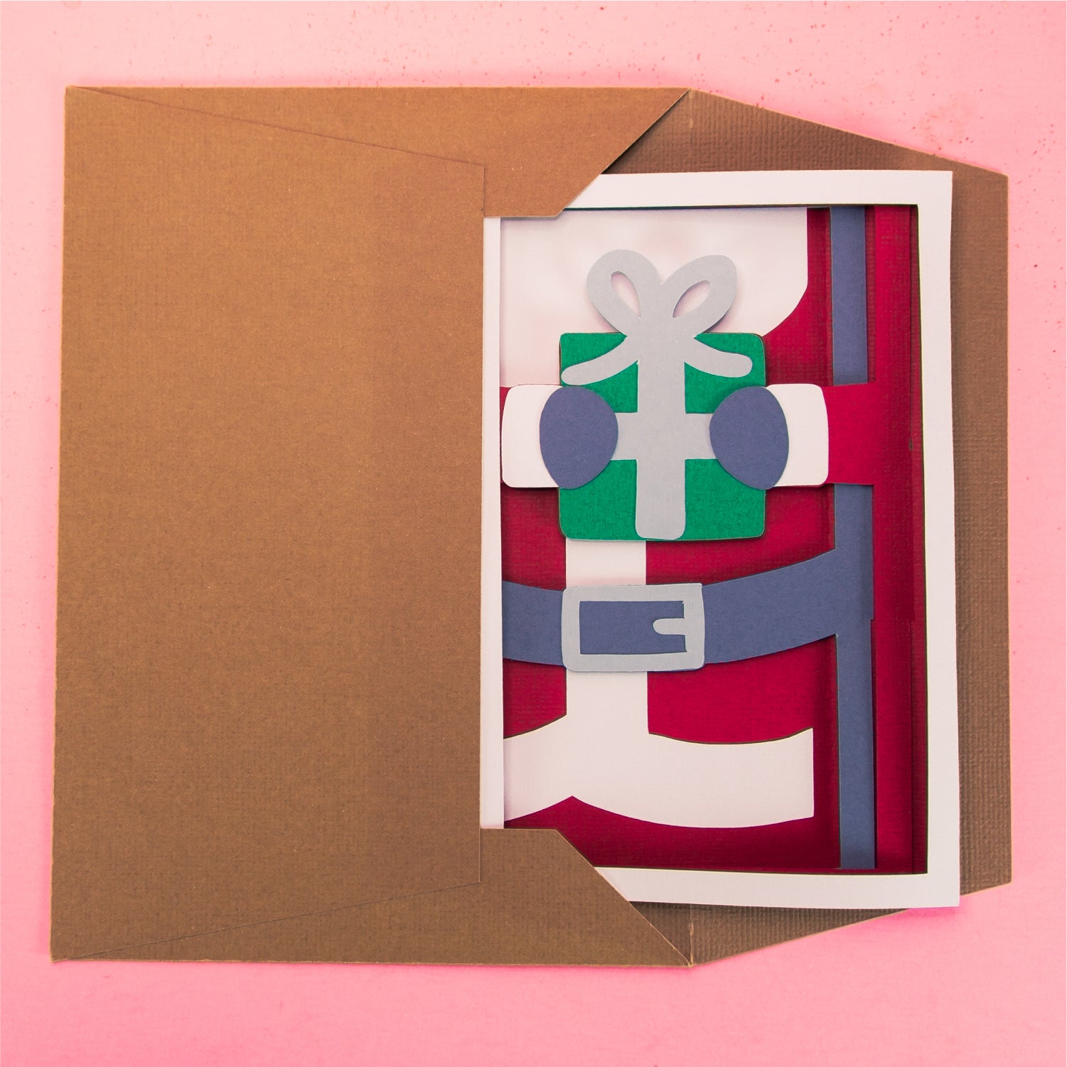 Create a super easy card for Christmas with this Layered Santa card design - a 3D Christmas card SVG! This is a layered design and it features Santa Claus holding a gift. I love updating the cardstock colors the present & bow! Try silver foil cardstock! This cutting file is perfect for Cricut and Silhouette cutting machines. The card folds flat for easy mailing and fits perfectly in the included 5x7” envelope cut file. Explore more of my card designs for even more cute and creative Christmas papercraft ideas!