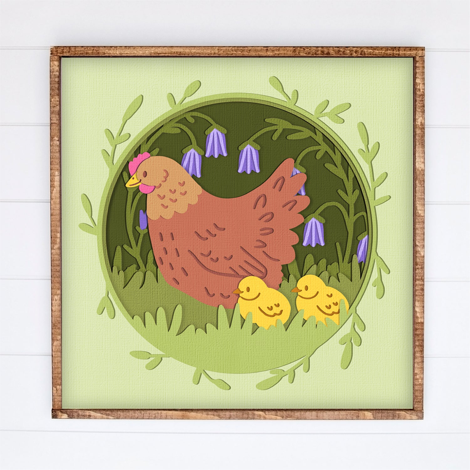 Mama Hen & Chicks Shadow Box - 3D Mother's Day and Spring Shadowbox SVG