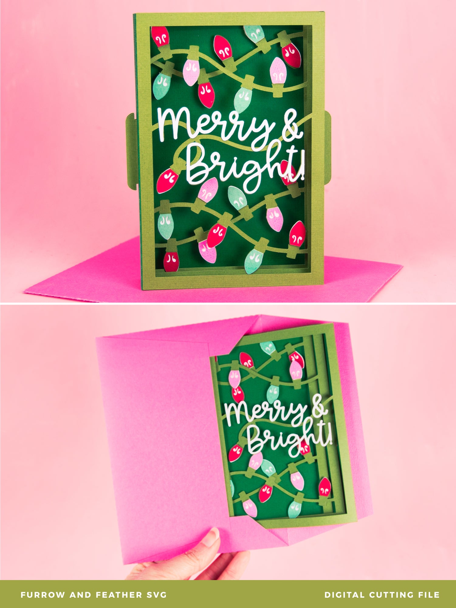 Merry & Bright Christmas Lights Card - 3D Christmas Card SVG