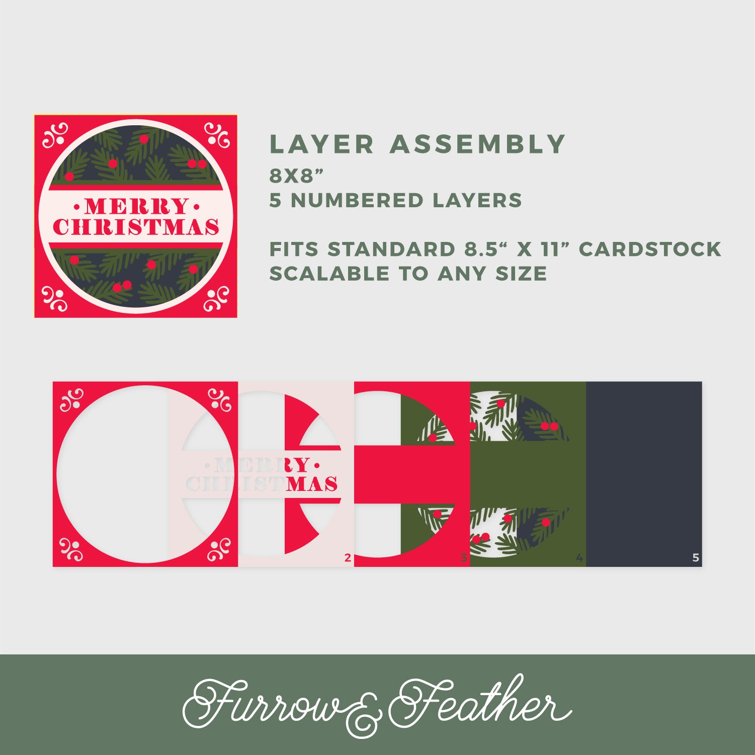 Create a beautiful Christmas craft with this Merry Christmas Shadow Box SVG cutting file! This design features the words ‘Merry Christmas’ in front of pine bows and berries. Customize the cardstock colors!