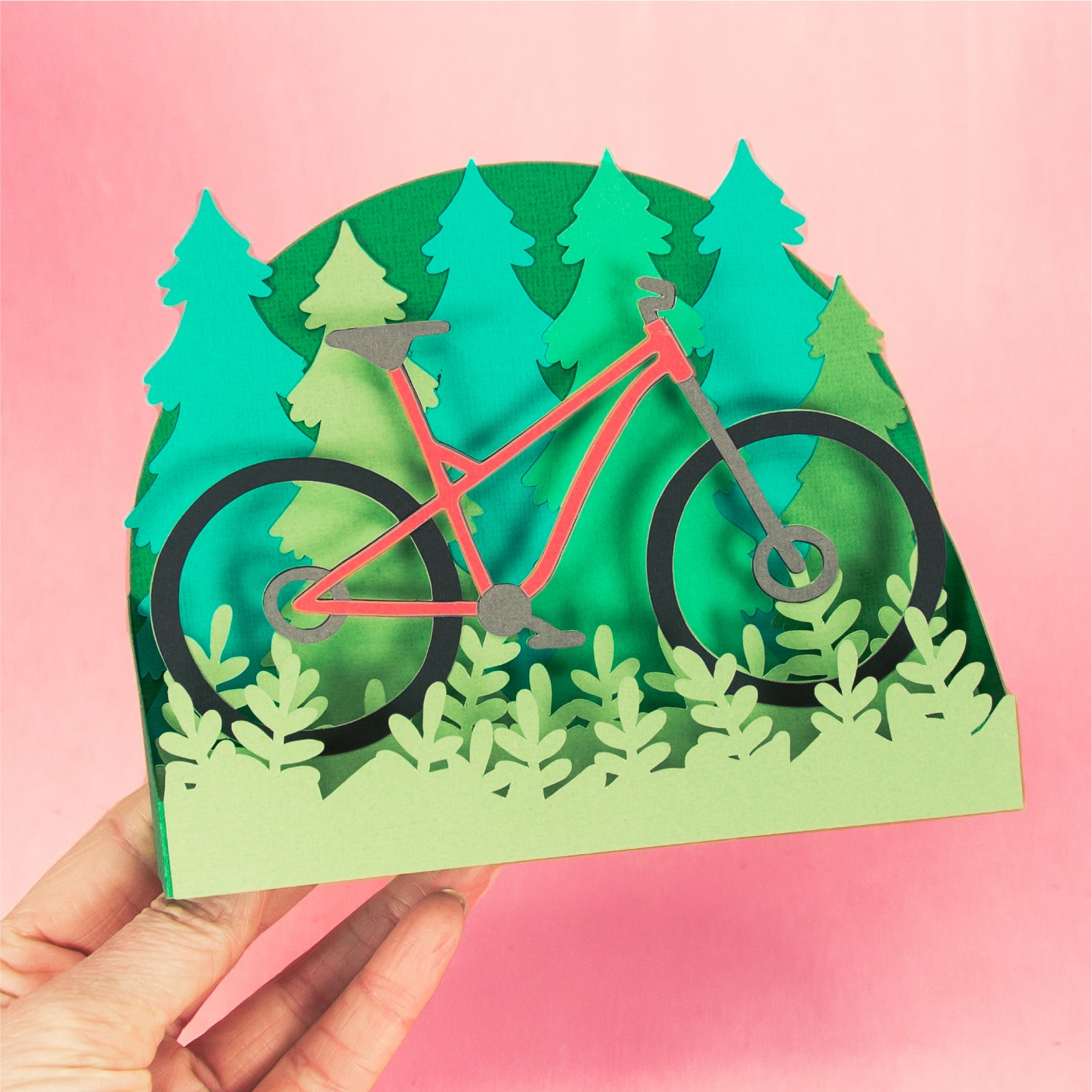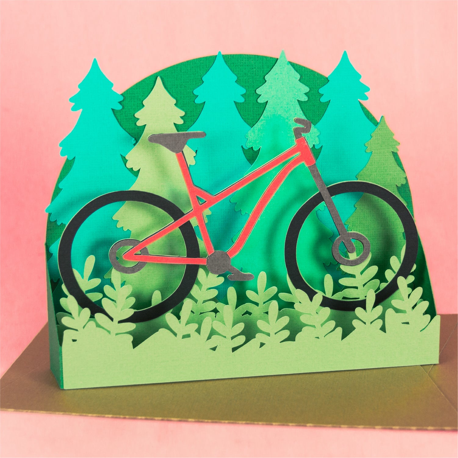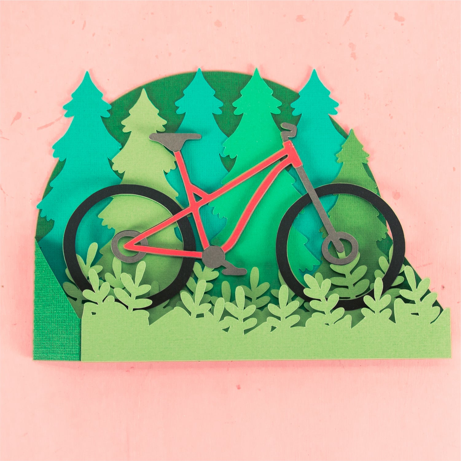 Create a fun card for your favorite mountain biker with this Mountain Bike Card - a 3D biking card SVG! This is such a fun card for Father's Day or a birthday card. This design features a mountain bike in a forest. Change the color of the bike frame to match the recipients bike! This cutting file is perfect for Cricut and Silhouette cutting machines. The card folds flat for easy mailing and fits perfectly in the included 5x7” envelope cut file. Explore more of my card designs for even more cute and creative ideas!
